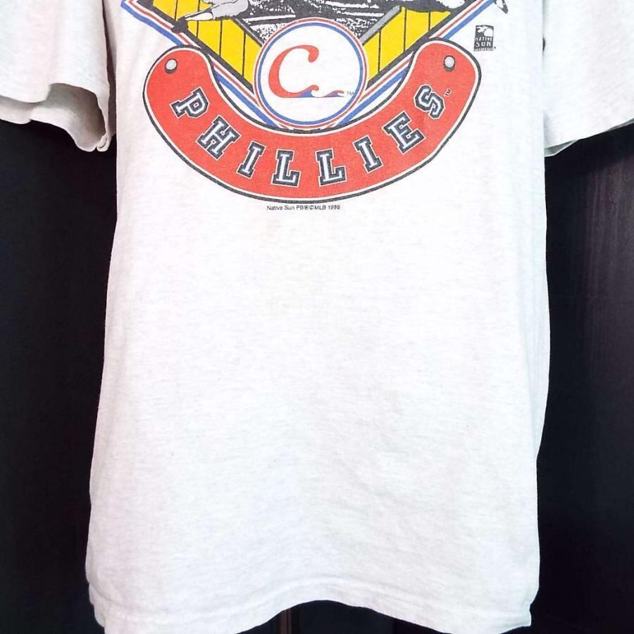 【肩幅52cm】【90年代】GILDAN ギルダン CLEARWATER PHILLIES MLB 1998 野球 ベースボール プリント 半袖Tシャツ Lサイズ 霜降りグレー コットン・ポリエステル(99/1)【湘南倉庫】USA古着 T3 90's
