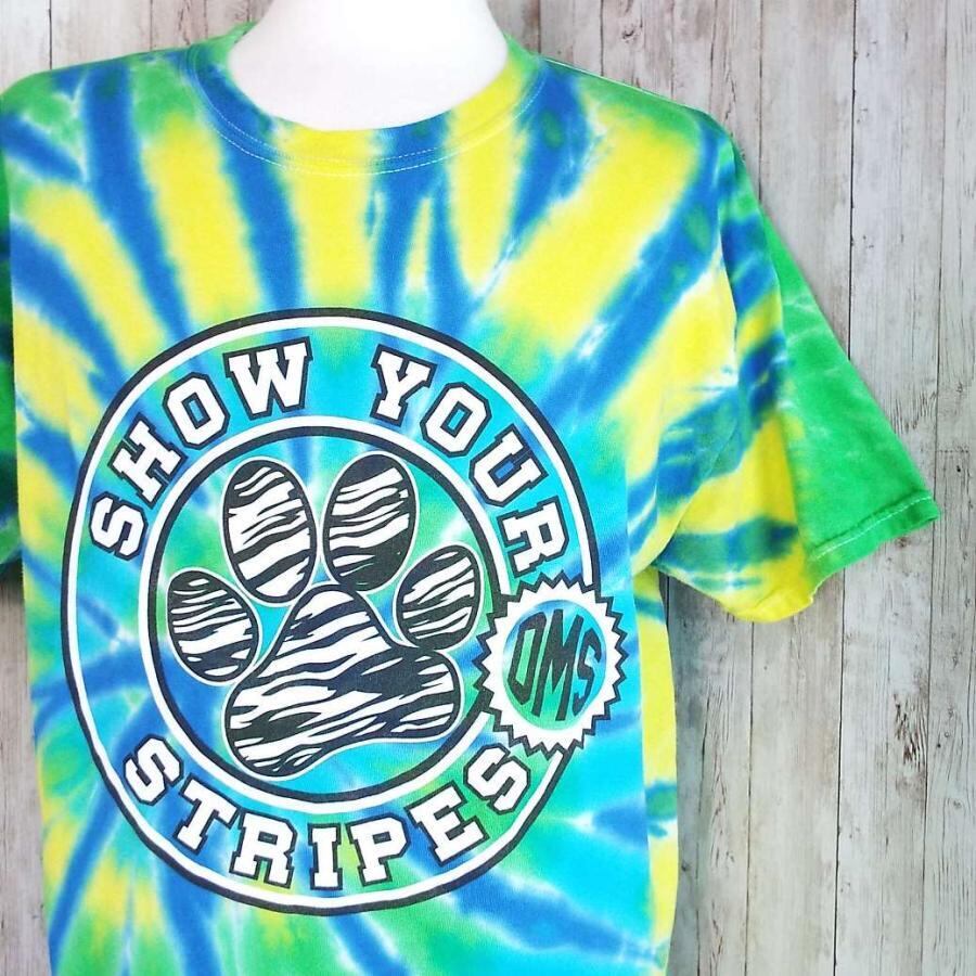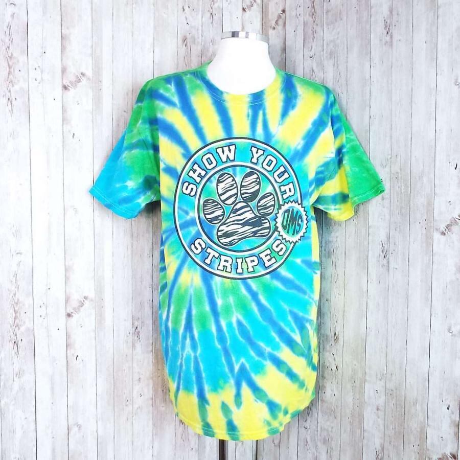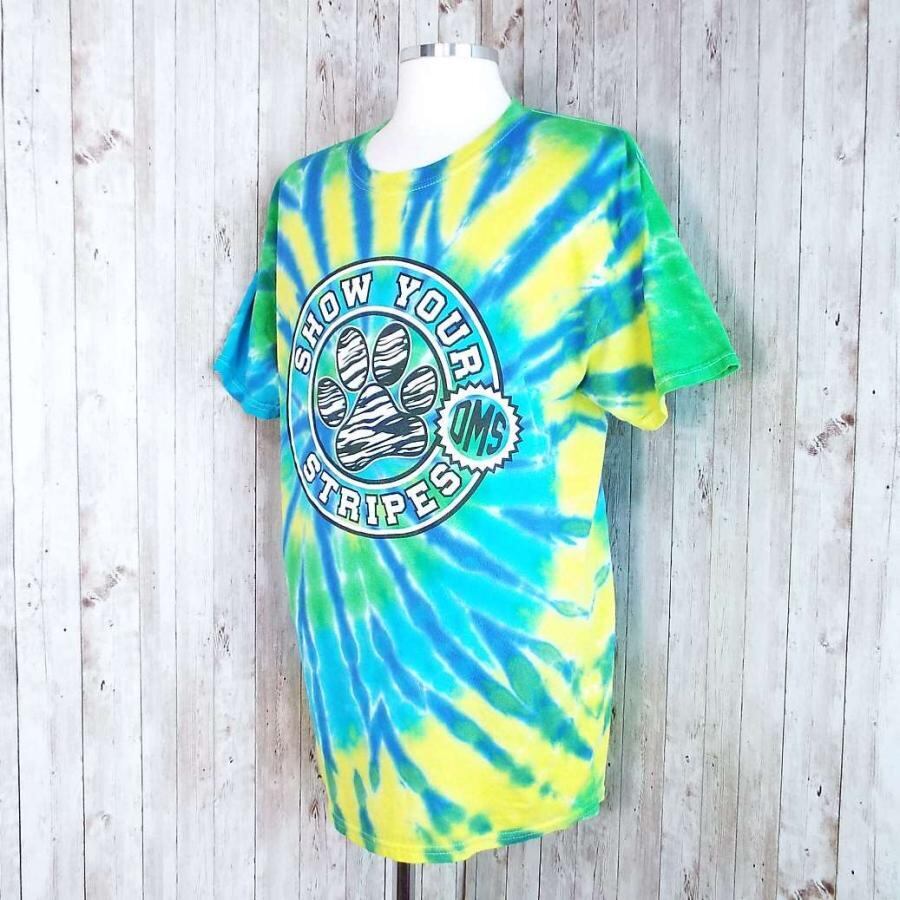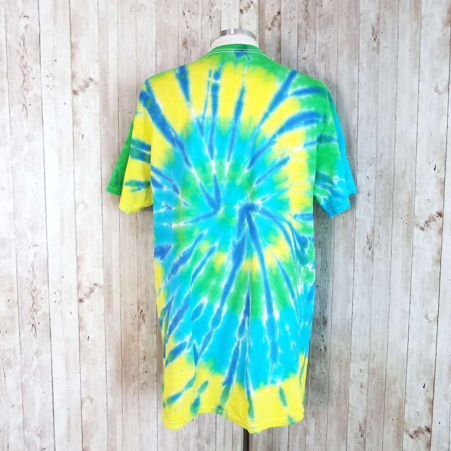 ◎肩幅50cm◎【タイダイ染】COLORTONE カラートーン SHOW YOUR STRIPES ラウンドプリント 半袖Tシャツ Lサイズ グラデーション マルチカラー コットン100%【湘南倉庫】USメンズ古着 T3