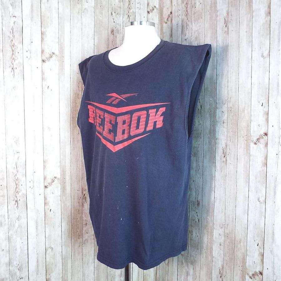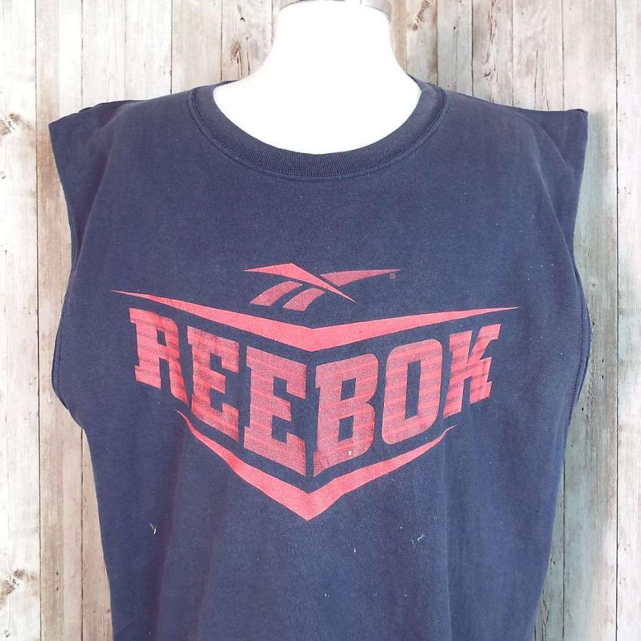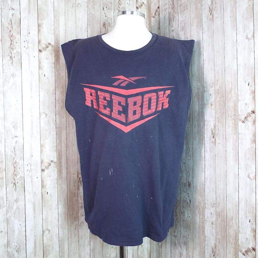 ◎肩幅54cm◎【MADE IN USA】アメリカ製 REEBOK リーボック 刺繍 ビッグロゴ ノースリーブ ランニングシャツ Lサイズ ネイビー【湘南倉庫】USA古着 T3