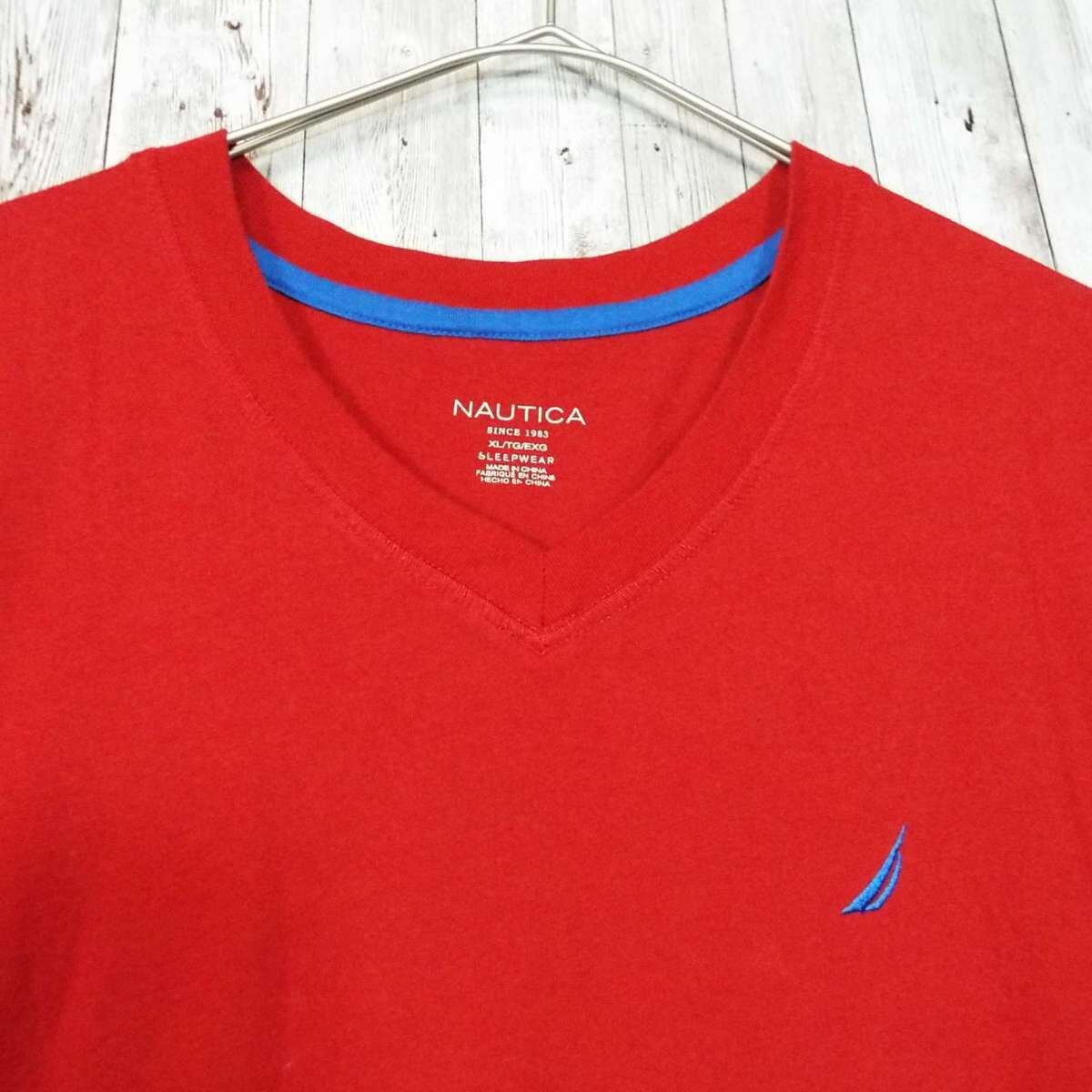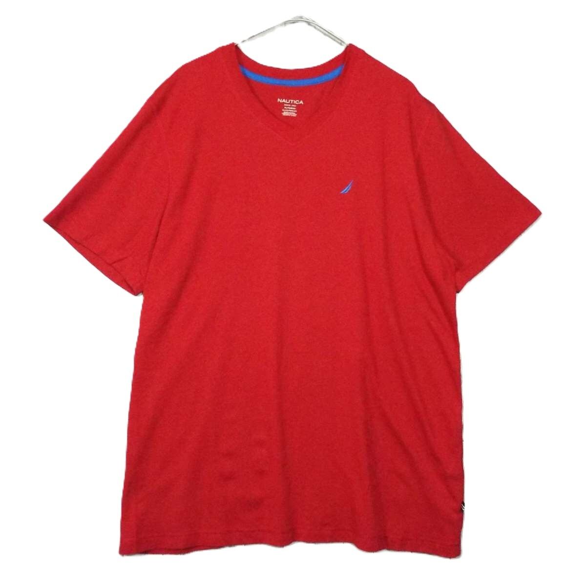【ワンポイント刺繍ロゴ】NAUTICA ノーティカ 無地 半袖Vネック Tシャツ XLサイズ(肩幅50cm) レッド コットンポリエステル(60/40)【湘南倉庫】USAアメリカメンズフルギ ノームコア