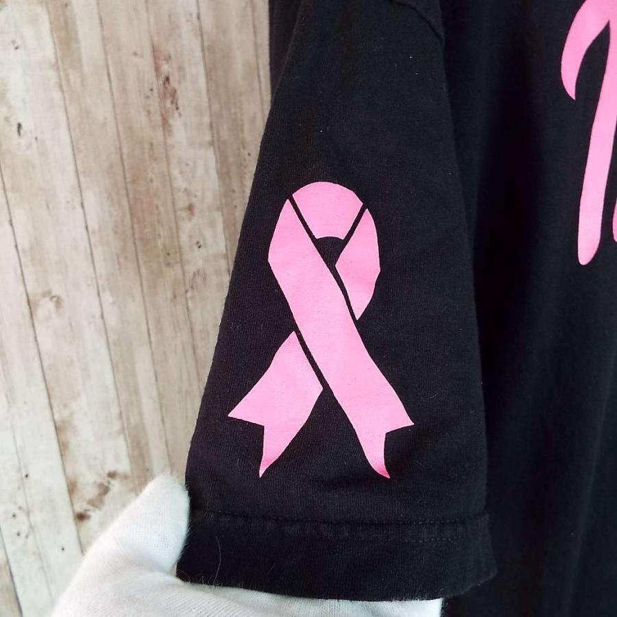【肩幅59cm】【ピンクリボン】Crowns Guam クラウンズグアム Boobie レタード 両面プリント 袖アームロゴ 半袖Tシャツ XLサイズ ブラック【湘南倉庫】USA古着 T3 ゆるだぼ