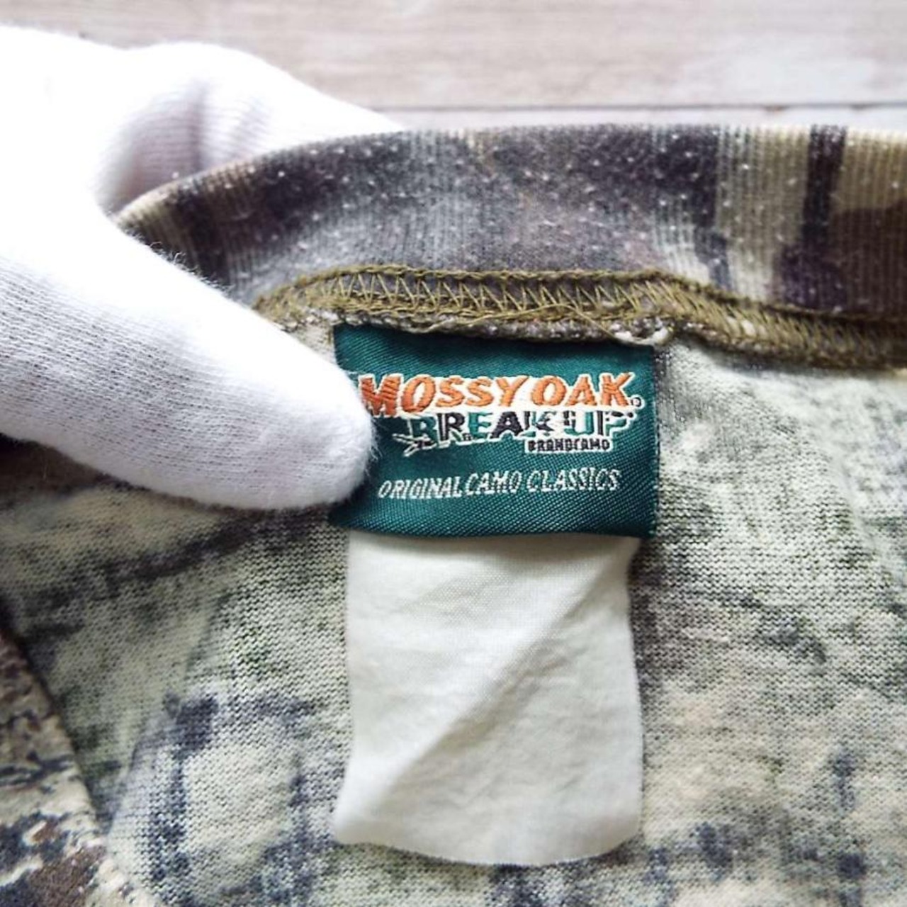 ◎肩幅55cm◎リアルツリーカモ MOSSY OAK モッシーオーク ナイフ キャンプ アウトドア 全面プリント クルーネック 半袖Tシャツ XLサイズ グリーン【湘南倉庫】USA古着 T3