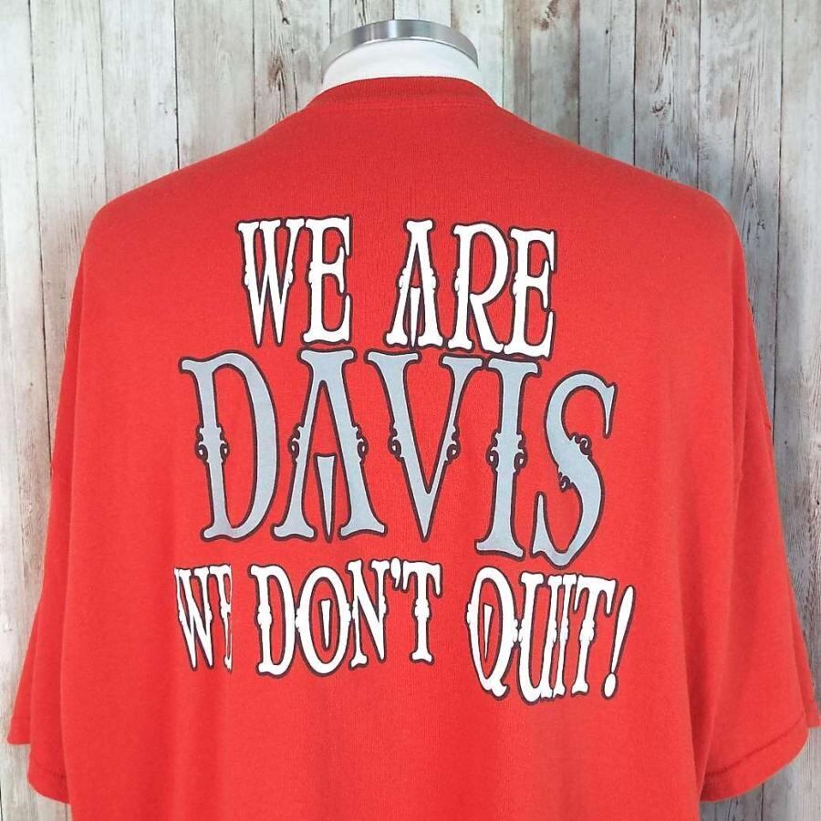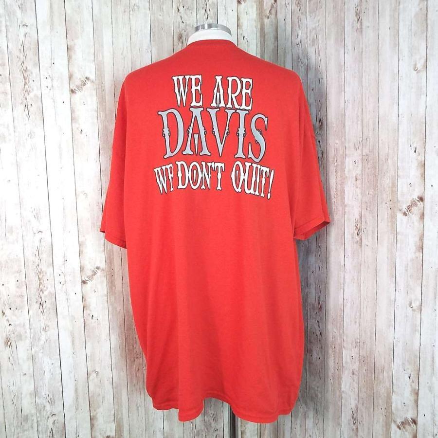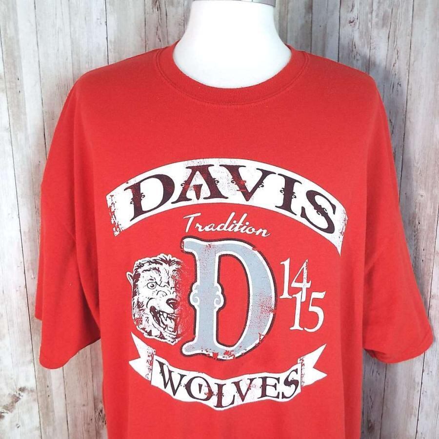 ◎肩幅63cm◎【フットボールチーム】GILDAN ギルダン DAVIS WOLVES Traclition アニマル キャラクター アーチロゴ プリント 半袖Tシャツ 2XL(XXL)サイズ レッド 【湘南倉庫】USA古着 T3