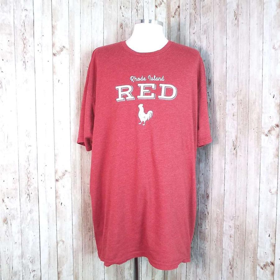 ◎肩幅57cm◎rhode island RED ロードアイランドレッド 鶏 動物 ラバープリント クルーネック 半袖Tシャツ XLサイズ レッド 【湘南倉庫】USメンズ古着 T3 ,"4912345000743"