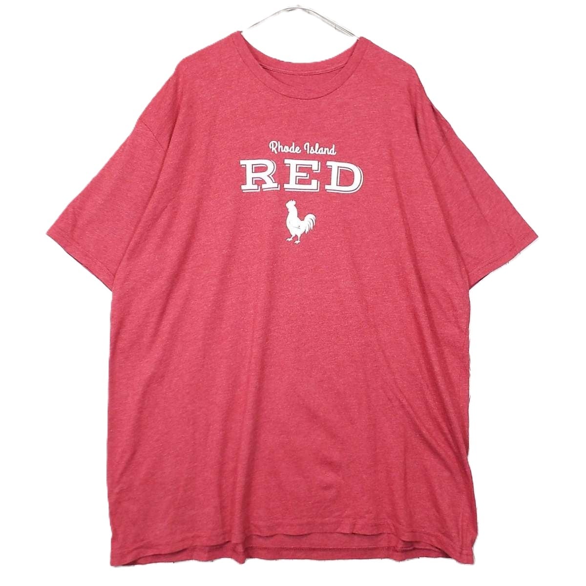 【ニワトリデザイン】Rhode Island RED ロードアイランドレッド 鶏 動物 ラバープリント クルーネック 半袖Tシャツ XLサイズ(肩幅57cm)霜降りレッド 【湘南倉庫】USメンズ古着