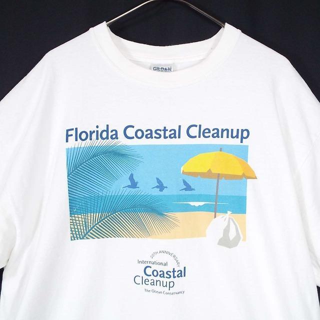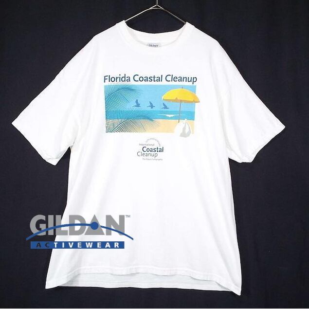 ◎肩幅57.5cm◎【90-00年代】GILDAN ギルダン Florida Coastal Cleanup anniversary 海岸イラスト ペリカン 企業スポンサー 両面プリント 半袖Tシャツ ホワイト コットン100% 【湘南倉庫】USメンズ古着 大きいサイズ T42 ULTRA COTTON