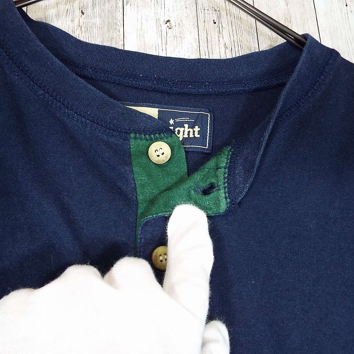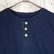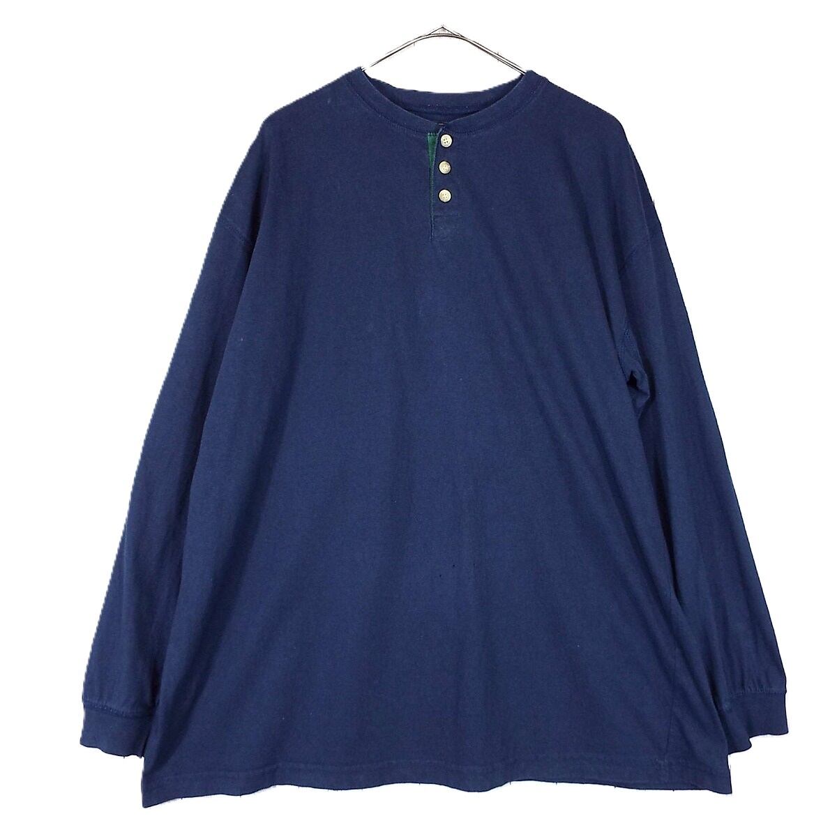 【ダメージロンT】GOOD NIGHT(グッドナイト)ヘンリーネック 3B 無地 長袖Tシャツ Lサイズ ネイビー【湘南倉庫】USメンズ古着 "12350674"