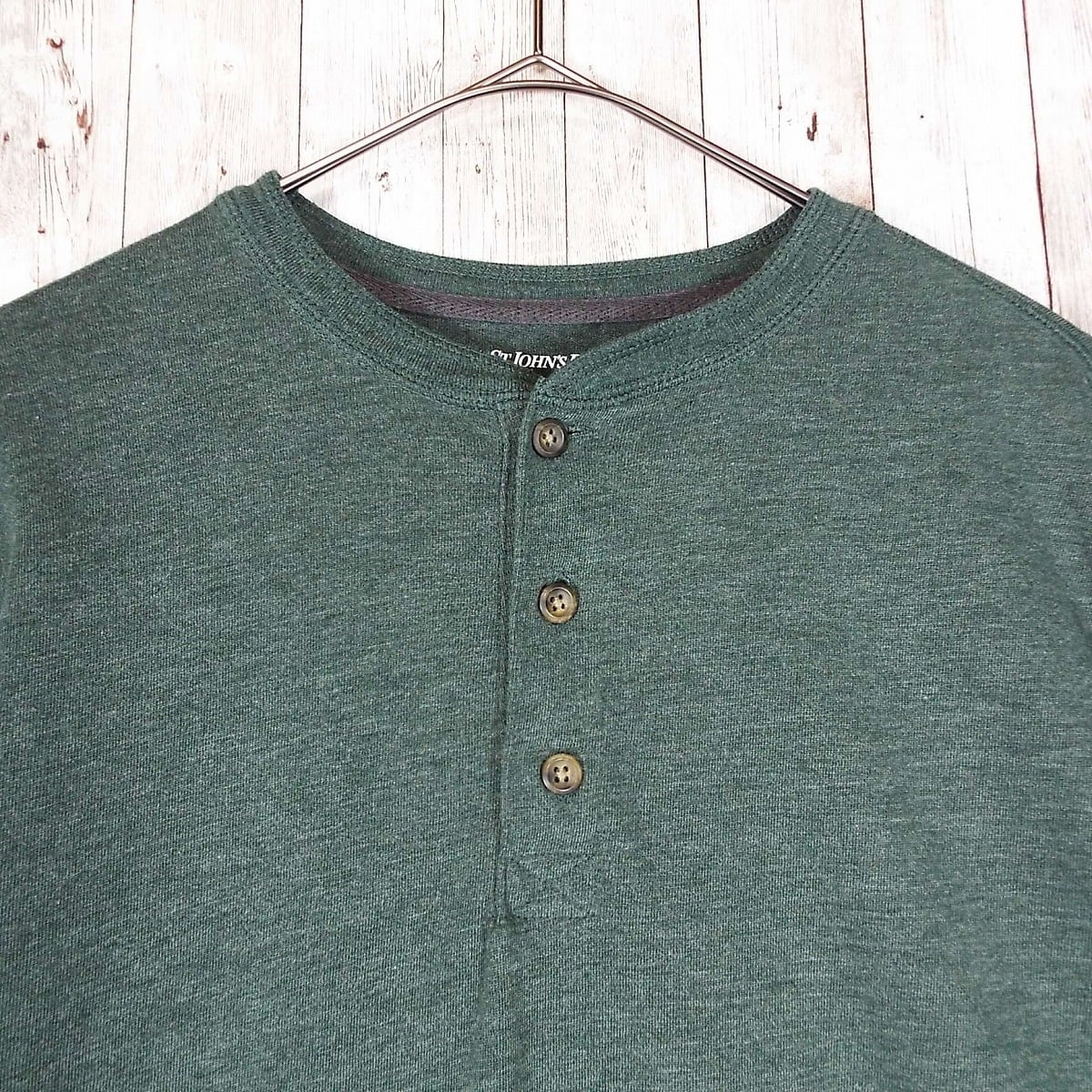 【ヘンリーネックシャツ】ベトナム製 ST.JOHN'SBAY 3B 無地 長袖Tシャツ(ロンT)Mサイズ 霜降りグリーン【湘南倉庫】USメンズ古着 霜降り,"12350704"