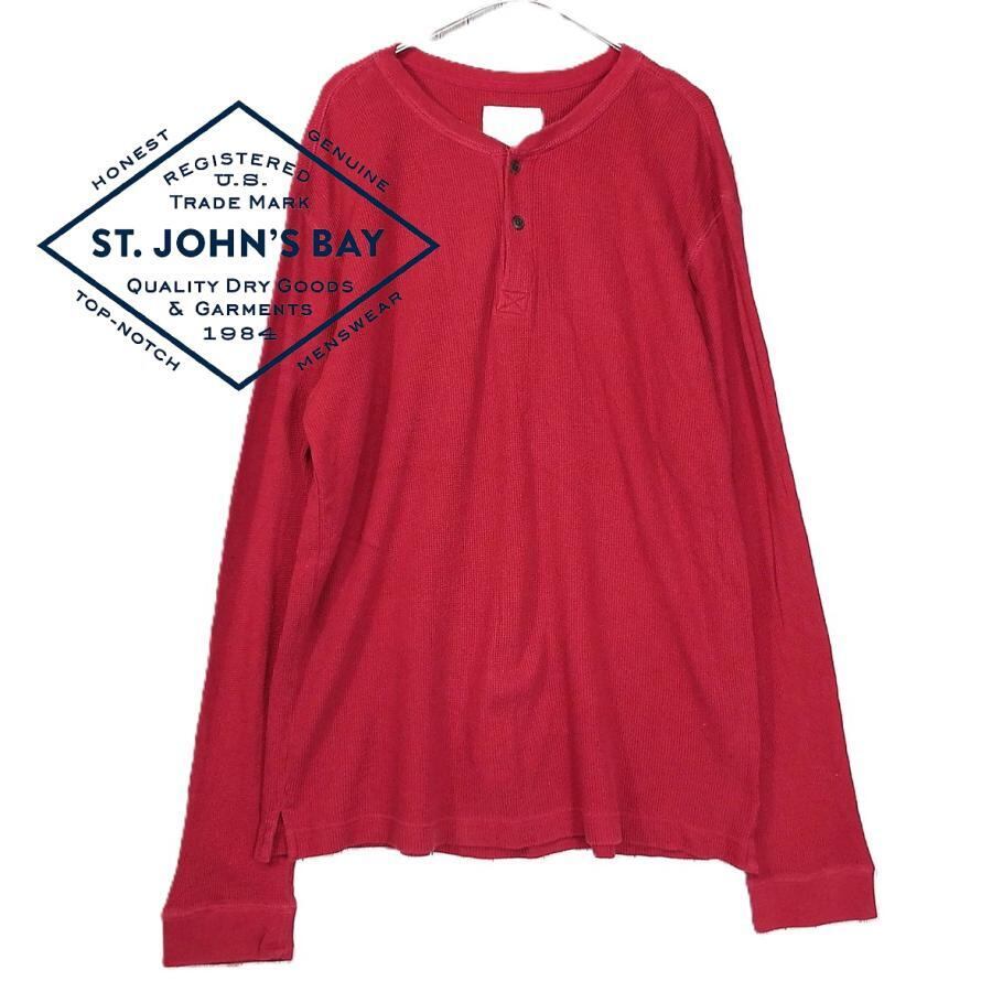 St JOHN’S BAY(セントジョンズベイ)ボタン留め ヘンリーネック 長袖シャツ コットン100% XLサイズ レッド【湘南倉庫】US古着"12347070"