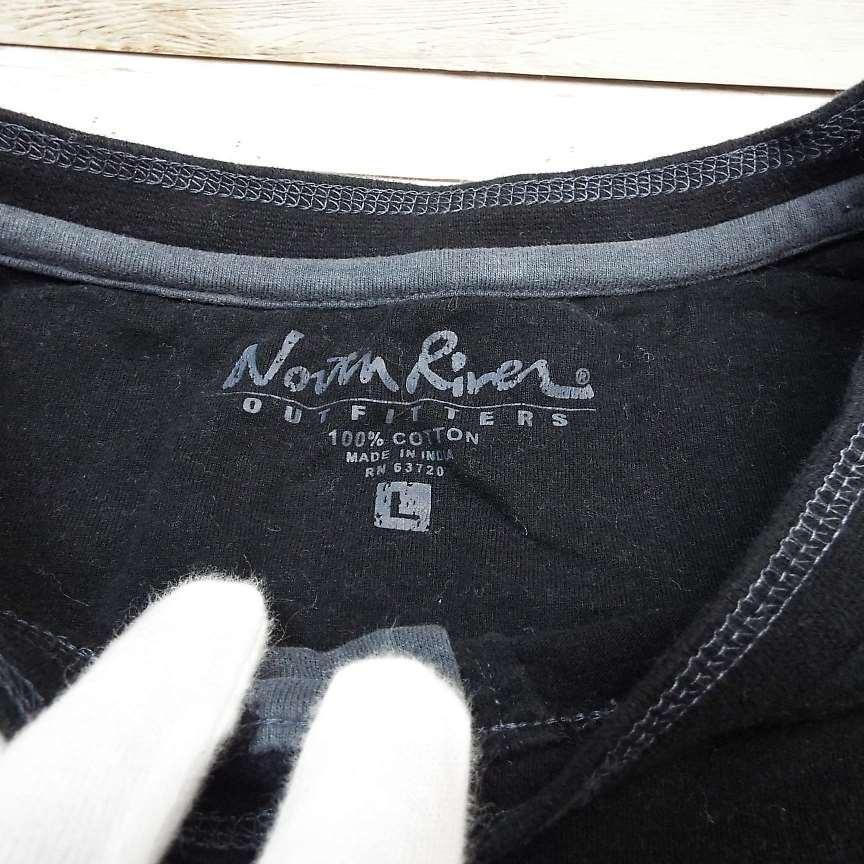 【Lサイズ】インド製 NORTH RIVER(ノースリバー)ヘンリーネック スエード調 丸首長袖シャツ ブラック【湘南倉庫】USメンズ古着 "12352111"