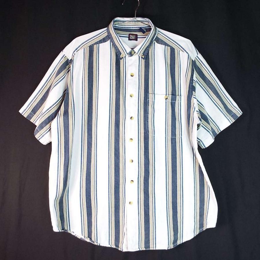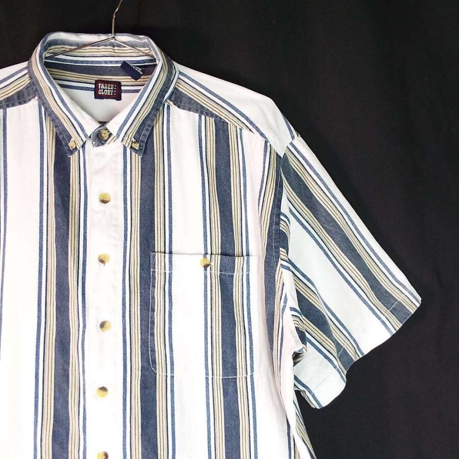 【大きいサイズ】バングラディシュ製 FADED GLORY フェイデッドグローリー 厚手 ストライプ ボダンダウン BD 半袖シャツ 2X 2XL コットン100% ホワイト・グレー・ブラウン【湘南倉庫】US古着 ビッグサイズ"4912345001344" ゆるだぼシャツ