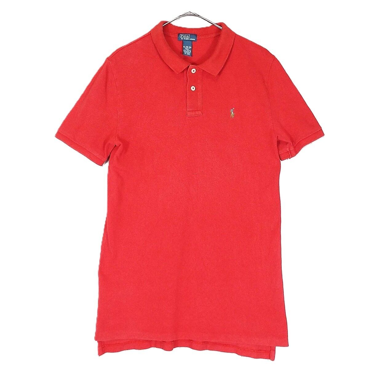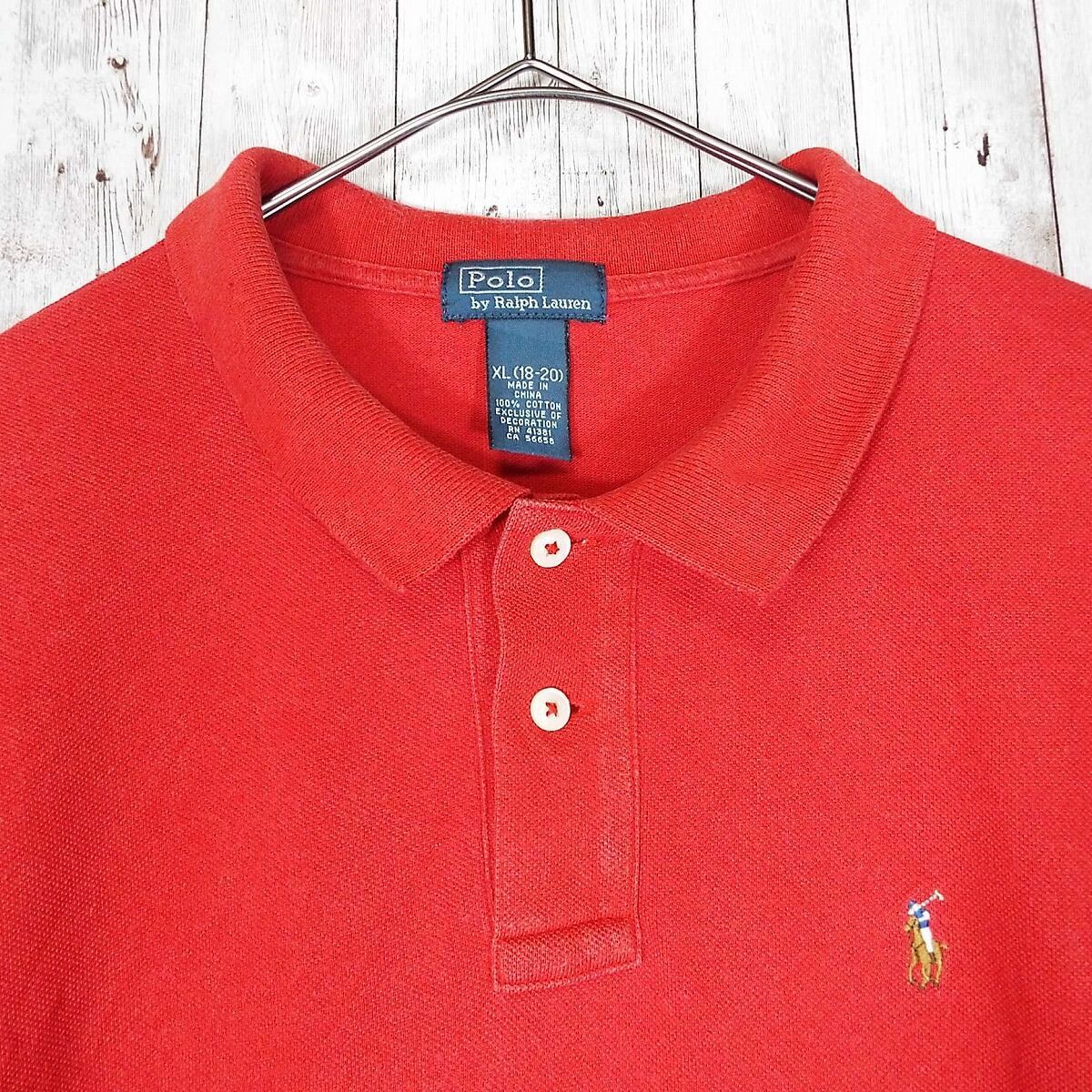 POLO RALPH LAUREN ポロ・ラルフローレン ポニー刺繍 鹿の子 無地 半袖ポロシャツ XLサイズ(18-20)レッド【湘南倉庫】US古着 12351015 ユニセックス