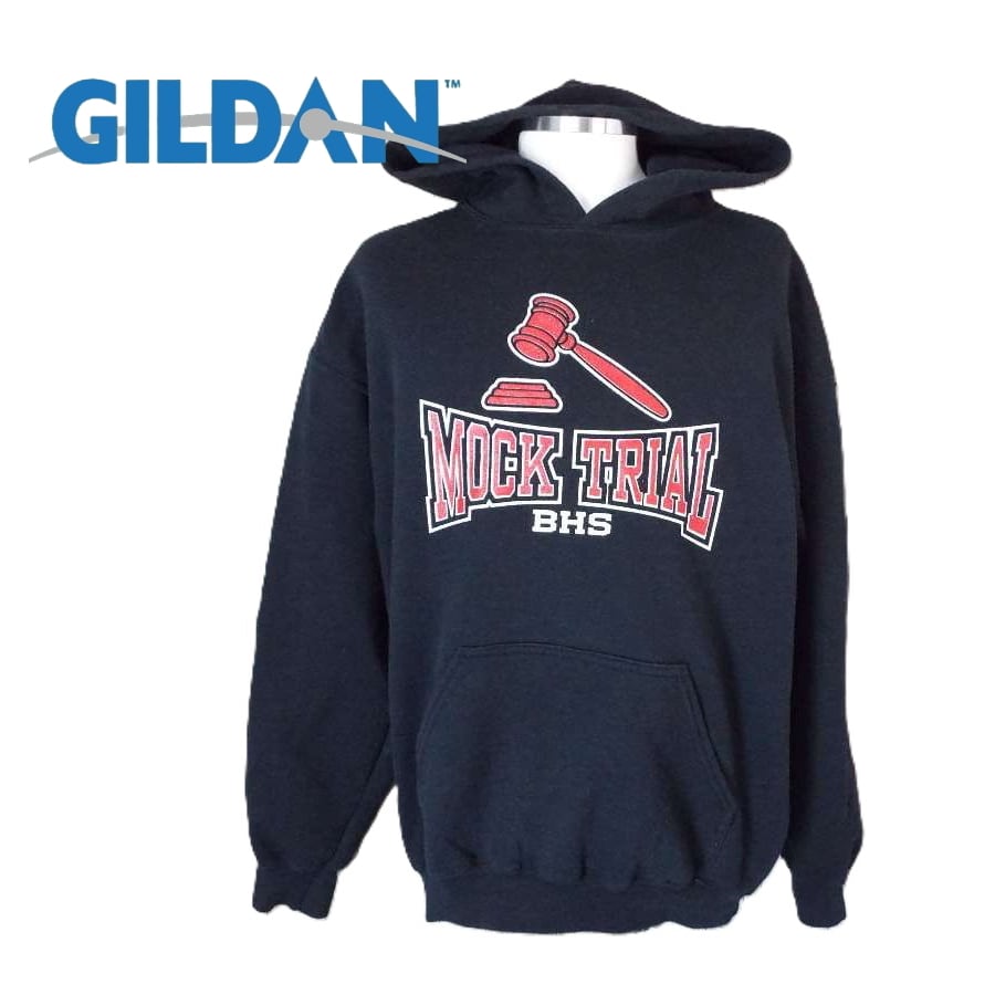 ホンジュラス製 GILDAN ギルダン MOCK TRIAL BHS BUCHANAN HIGH SCHOOL スクール 長袖フーテッドパーカー Mサイズ ブラック【湘南倉庫】USメンズ古着 12361786