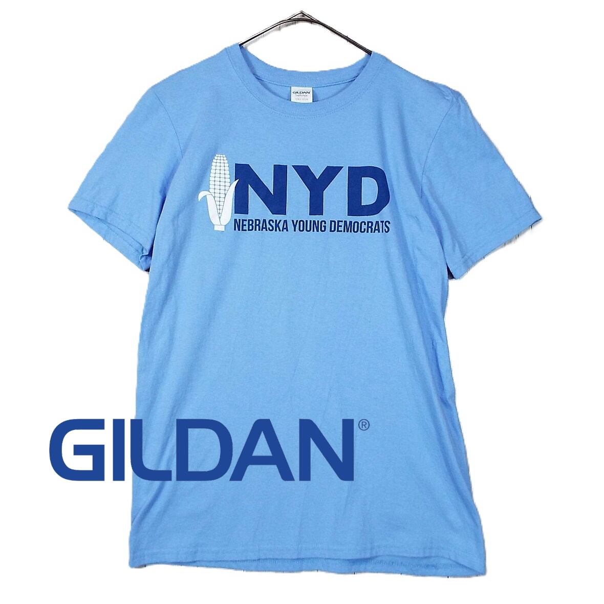 【美品】GILDAN ギルダン NYD NEBRASKA YOUNG DEMOCRATS トウモロコシ クルーネック 半袖 カラーTシャツ Sサイズ ブルー【湘南倉庫】USメンズ古着 12361687