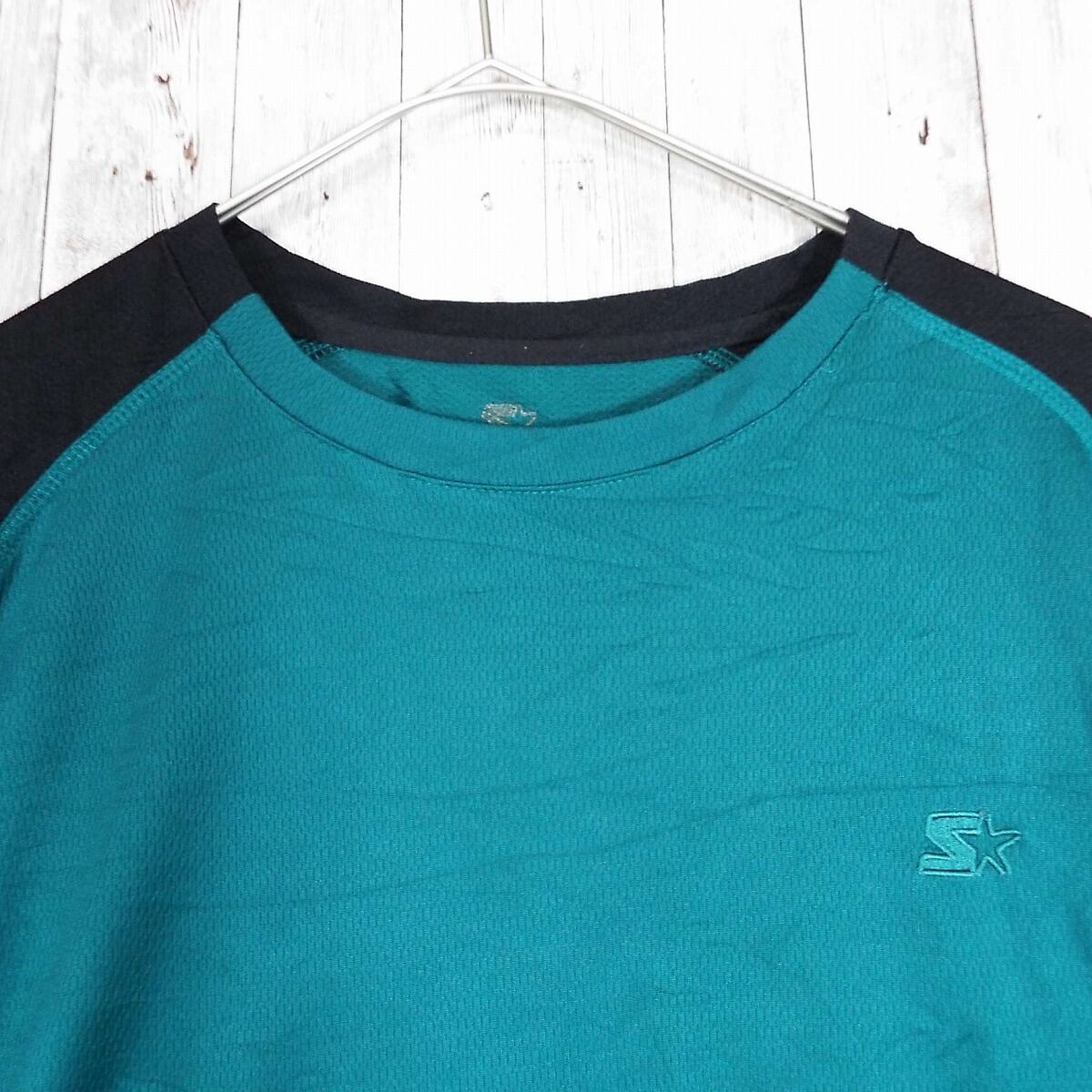 【大きいサイズ】バングラディシュ製 STARTER ワンポイント バイカラー メッシュ 速乾素材 ポリ100% 半袖シャツ 2XL(XXL)グリーン・ブラック【湘南倉庫】USメンズ古着 ゆるだぼ