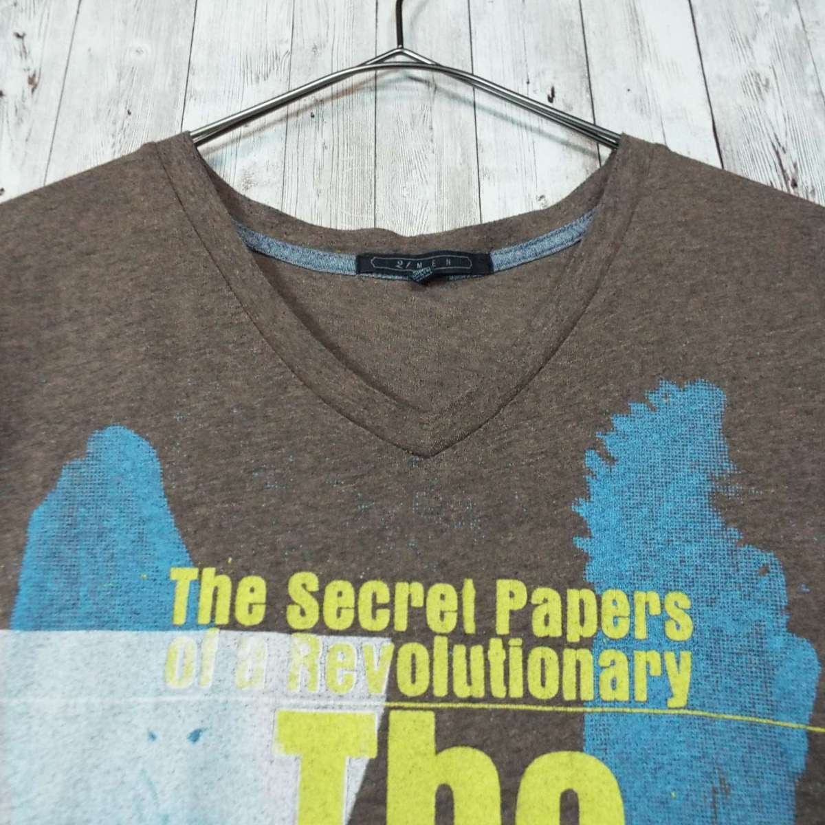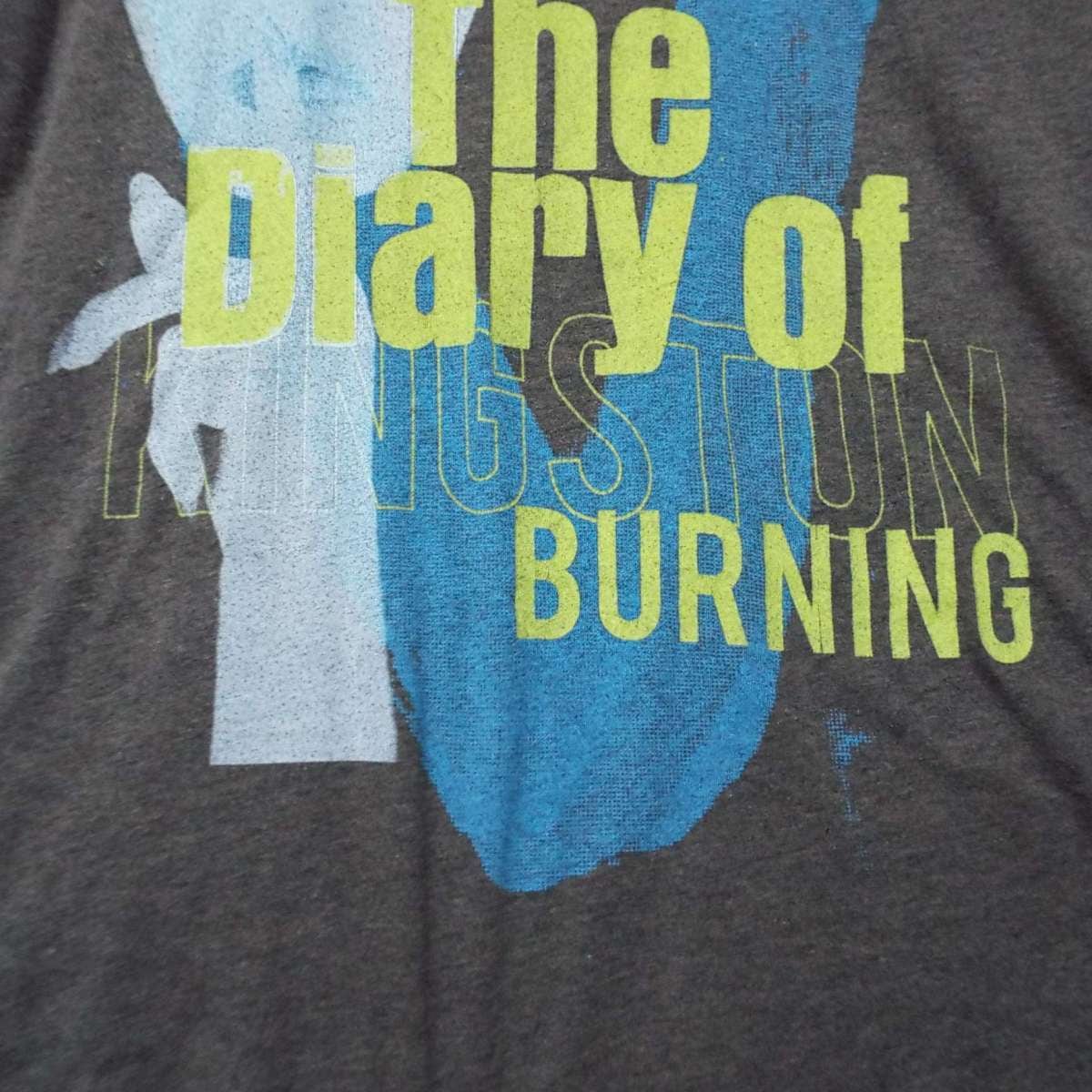 【シングルステッチ】80s・90s 21 MEN The Diary of KINGSTON BURNING プリント Vネック Tシャツ Mサイズ 霜降りブラウン コットンポリエステル混紡 【湘南倉庫】1980年代 1990年年代 US古着 14000324