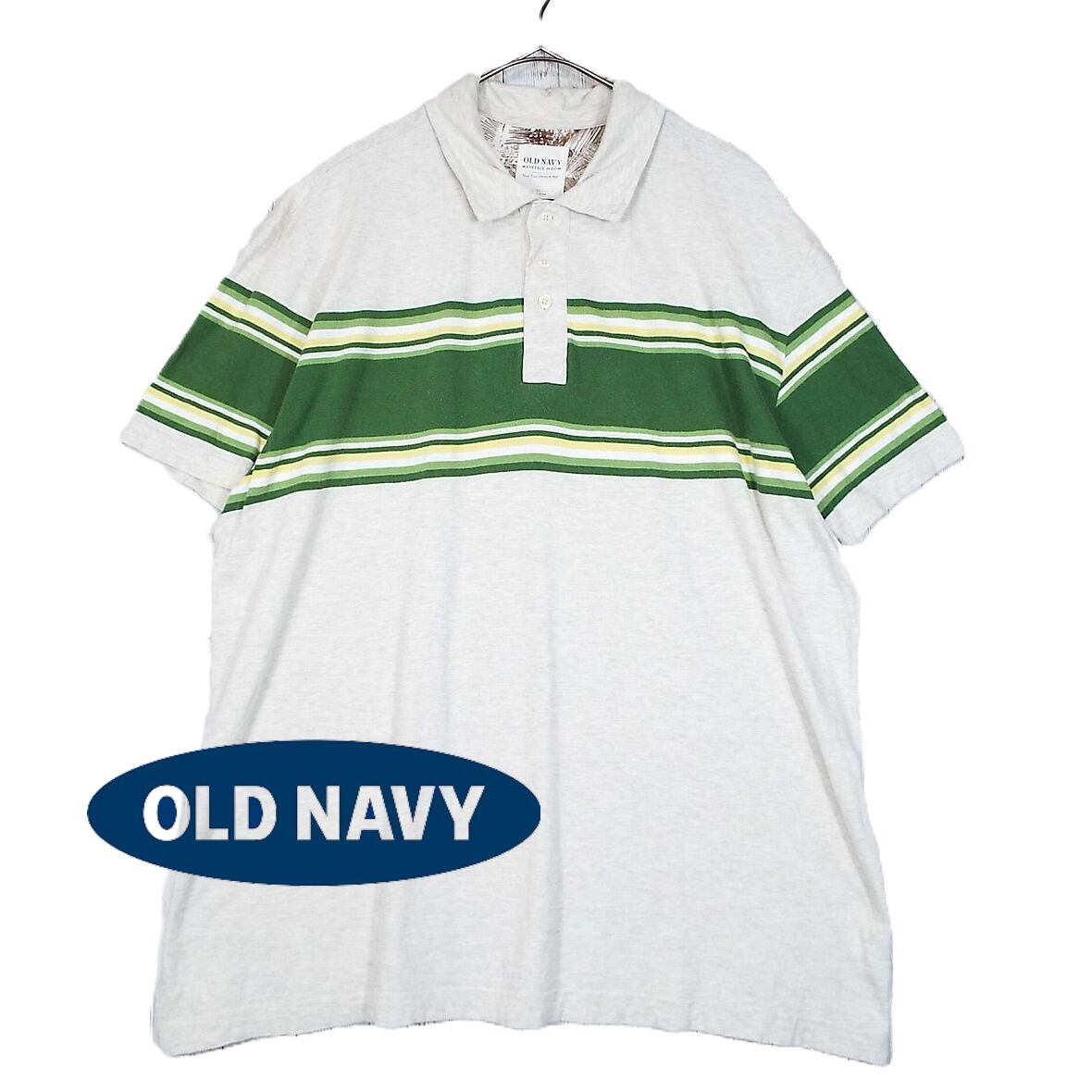 【アメカジスタイル】ベトナム製 OLD NAVY VINTAGE POLO 3B ボーダー柄 半袖ポロシャツ XLサイズ ベージュ・グリーン【湘南倉庫】USメンズ古着 17001250