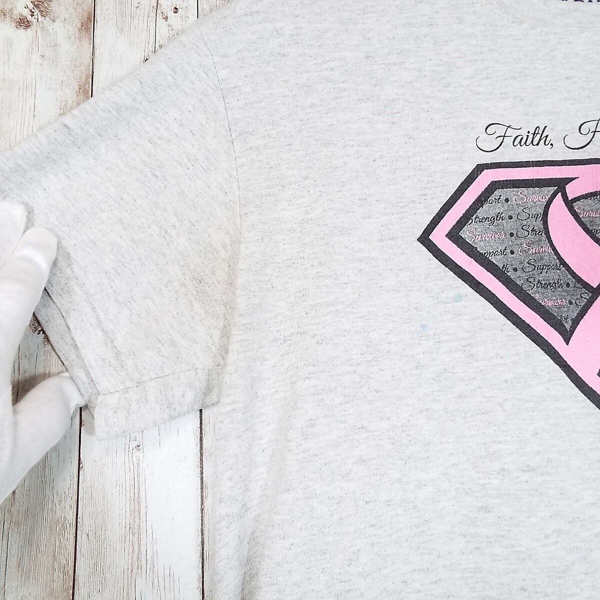 【グラフィックTシャツ】GILDAN Faith.Hope&Love ピンクリボン 半袖Tシャツ Sサイズ ライトグレー コットン【湘南倉庫】USメンズ古着 12390120