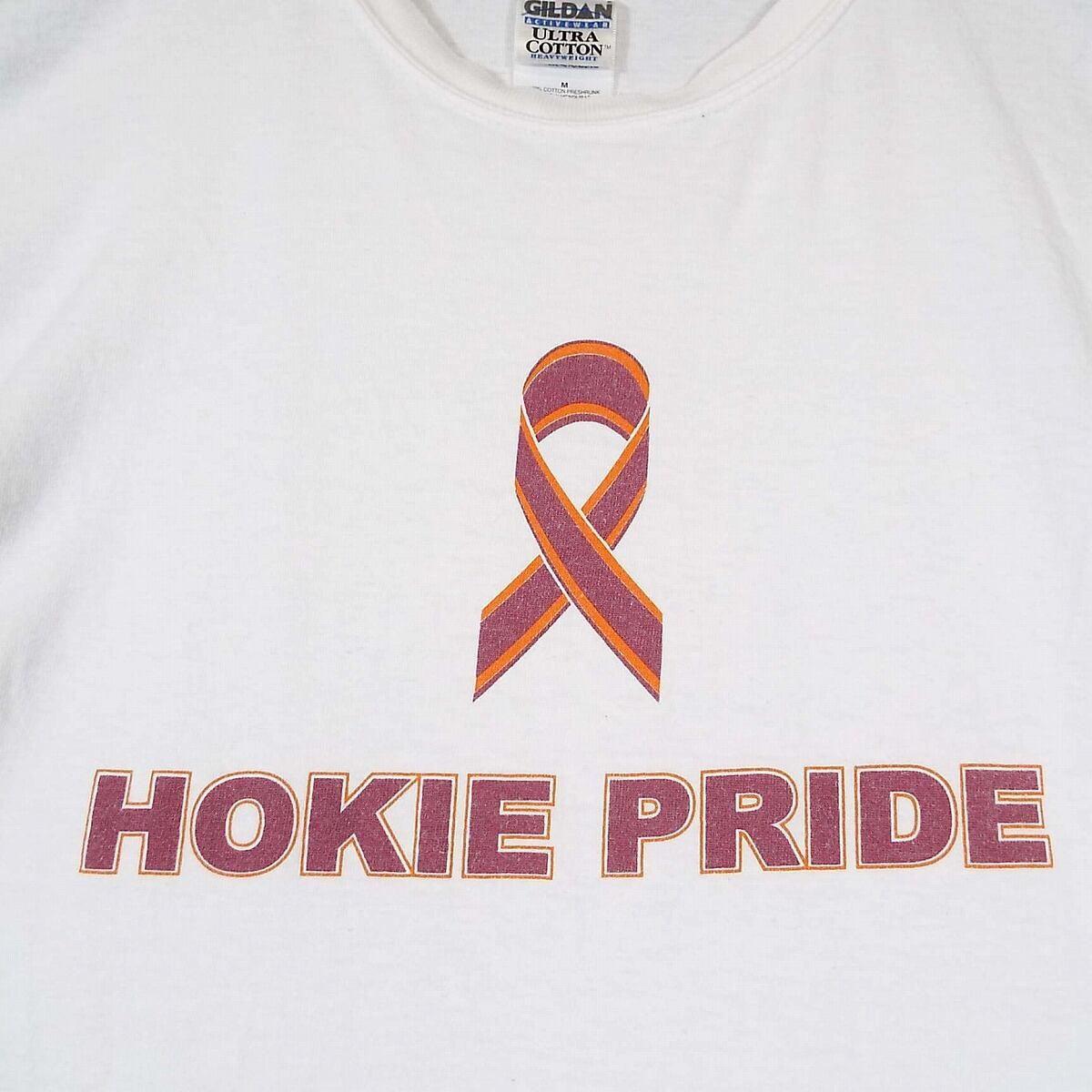 【軽いやれ感Tシャツ】GILDAN HOKIE PRIDE 半袖Tシャツ Mサイズ ホワイト【湘南倉庫】USメンズ古着 白Tシャツ 17002929