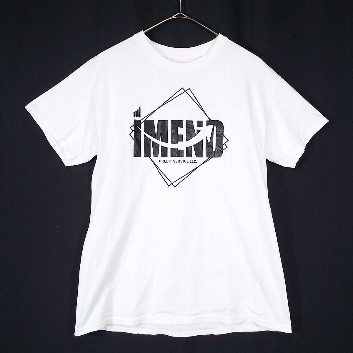 ◎肩幅46.5cm◎【企業ロゴ】GILDAN ギルダン IMEND credit service llc プリント 半袖Tシャツ Mサイズ ホワイト コットン100%【湘南倉庫】USメンズ古着 白T62 17002912
