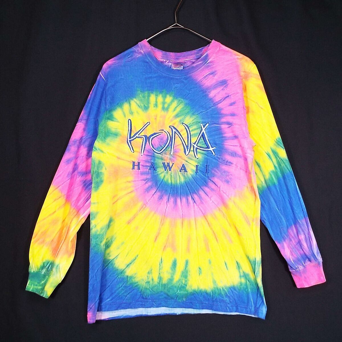 【3D刺繡ロゴ】インド製 COTTON MILL KONA HAWAII ハワイ・コナ 半袖Tシャツ Sサイズ(肩幅39cm)タイダイ染 コットン100%【湘南倉庫】US古着 カラー ロンT 12390212