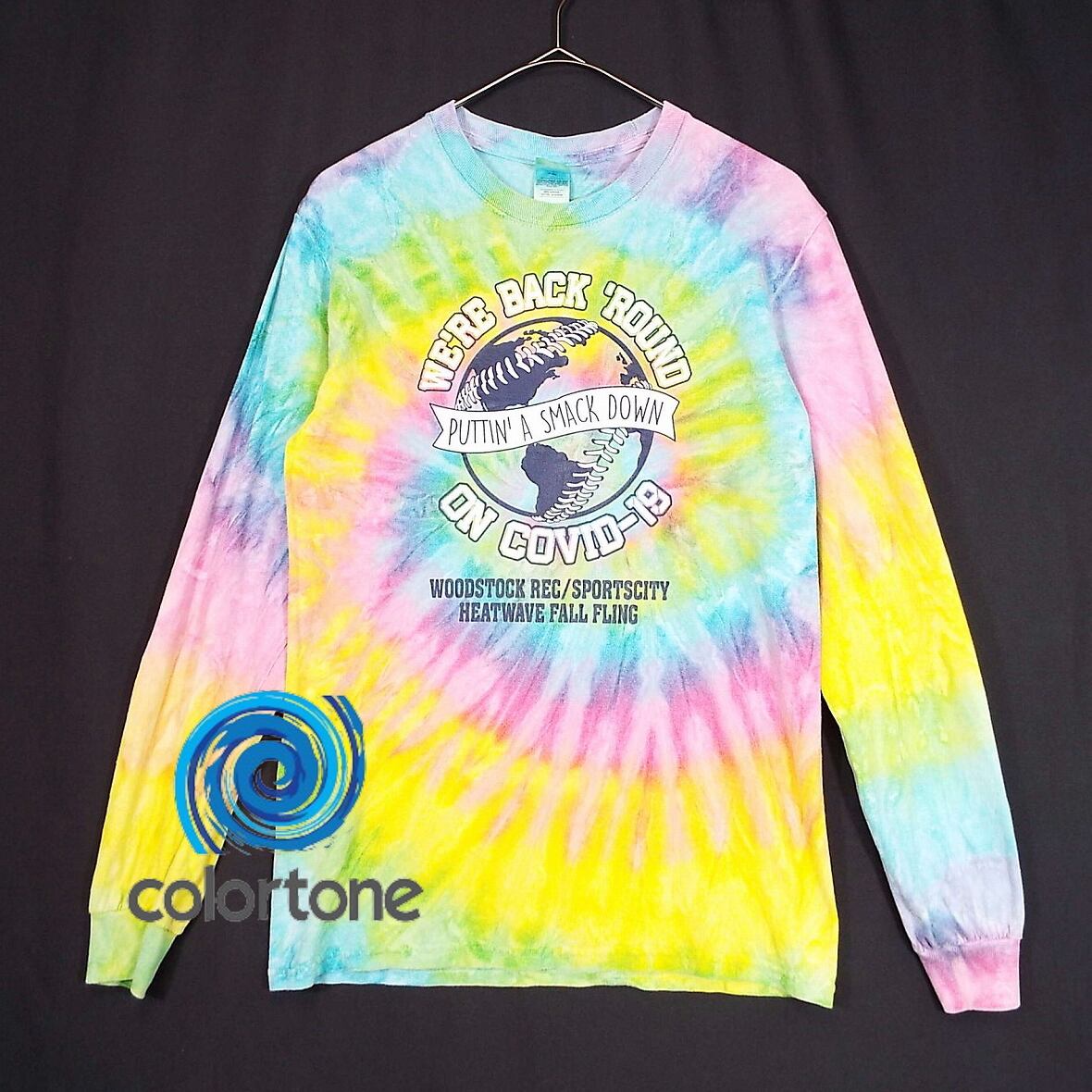 【タイダイ染ロンT】Colortone WE’RE BACK ’ROUND ON COVID-19 ロングスリーブTシャツ Sサイズ (肩幅41cm)コットン100%【湘南倉庫】US古着 カラーTシャツ 12390441