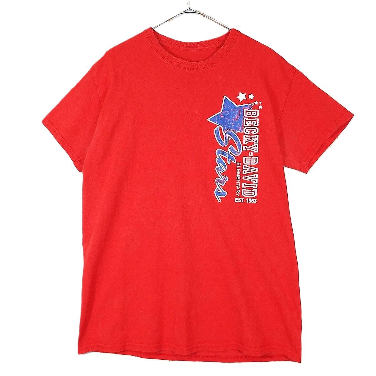【縦ロゴTシャツ】UN KNOWN BECKY-DAVID ELEMENTARY STARS EST.1963 半袖Tシャツ Mサイズ レッド【湘南倉庫】メンズ古着 12390427 スターバックス