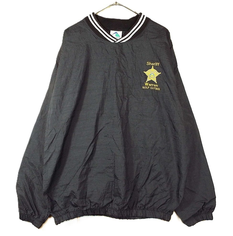 【肩幅68cm】【アメリカ製】AUGUSTA SPORTWEAR Sheriff Warren GOLF OUTING ワンポイント刺繍 Vネック ナイロン プルオーバー 長袖ウィンドブレーカー ピステ Lサイズ ブラック【湘南倉庫】USアメリカメンズ古着 12363070 ジャケット