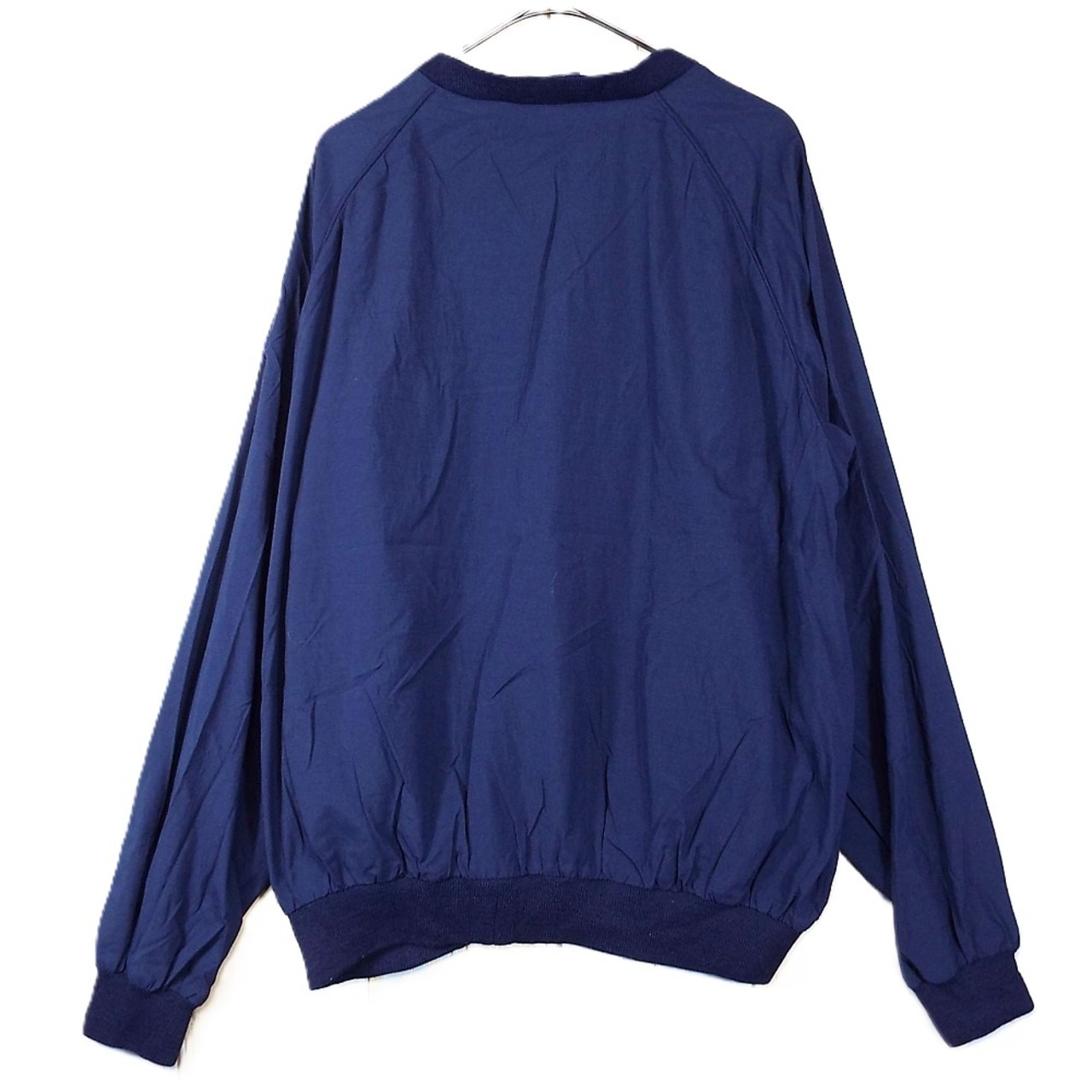 【身幅65cm】【1990年代】スコットランド製 SUNDERLAND Budweiser 三角タグ バドワイザー ワンポイント刺繍 Vネック 長袖プルオーバー ナイロン ウィンドブレーカー ピステト Mサイズ ネイビー【湘南倉庫】ヴィンテージ古着 12363049 ジャケット