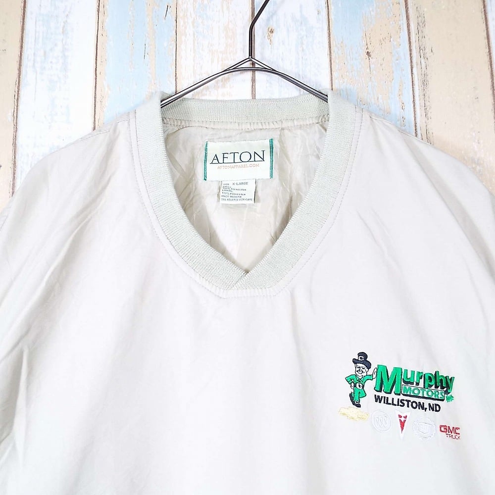 【肩幅64cm】【アメ車ロゴ】AFTON MURPHY MORTORS シボレー キャデラック GMC ワンポイント刺繍 無地 長袖プルオーバー ウィンドブレーカー ピステ ジャケット XLサイズ ベージュブラウン ポリエステル100%【湘南倉庫】メンズ古着 12363018