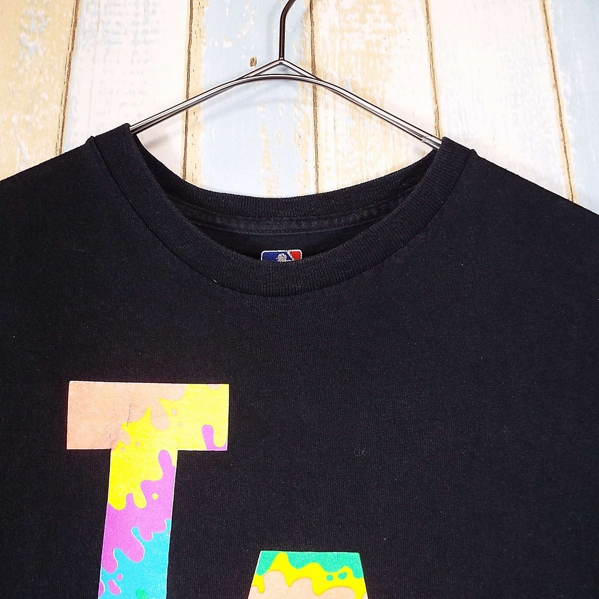 【MLB公式】GENUINE MERCHANDISE Los Angeles Dodgers ドジャース 半袖Tシャツ Mサイズ(肩幅48cm)ブラック カラフル タイダイ【湘南倉庫】メンズ古着 12355716
