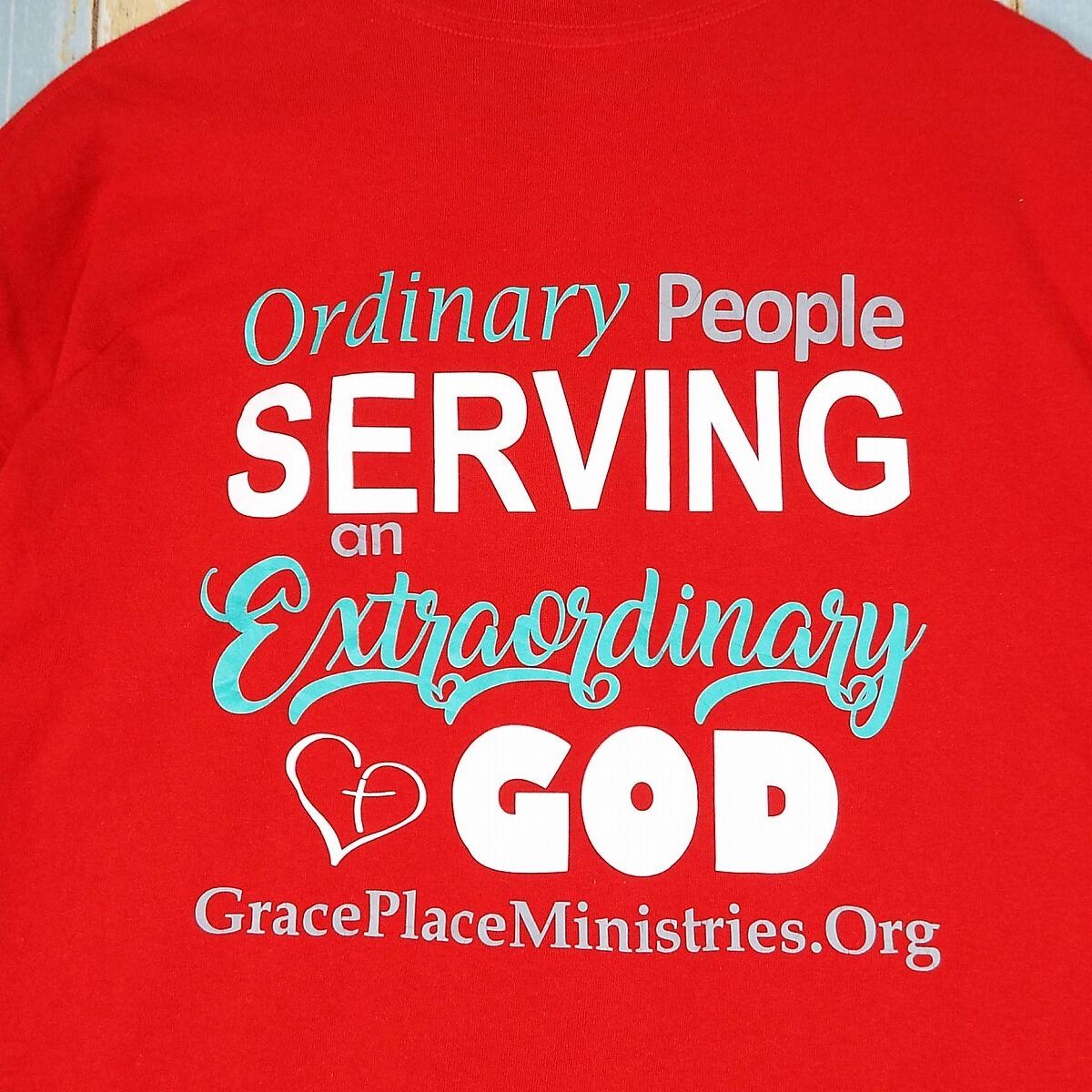【レタードTシャツ】GILDAN bethany worship center 企業 半袖Tシャツ XLサイズ レッド コットン100%【湘南倉庫】メンズ古着 17001267