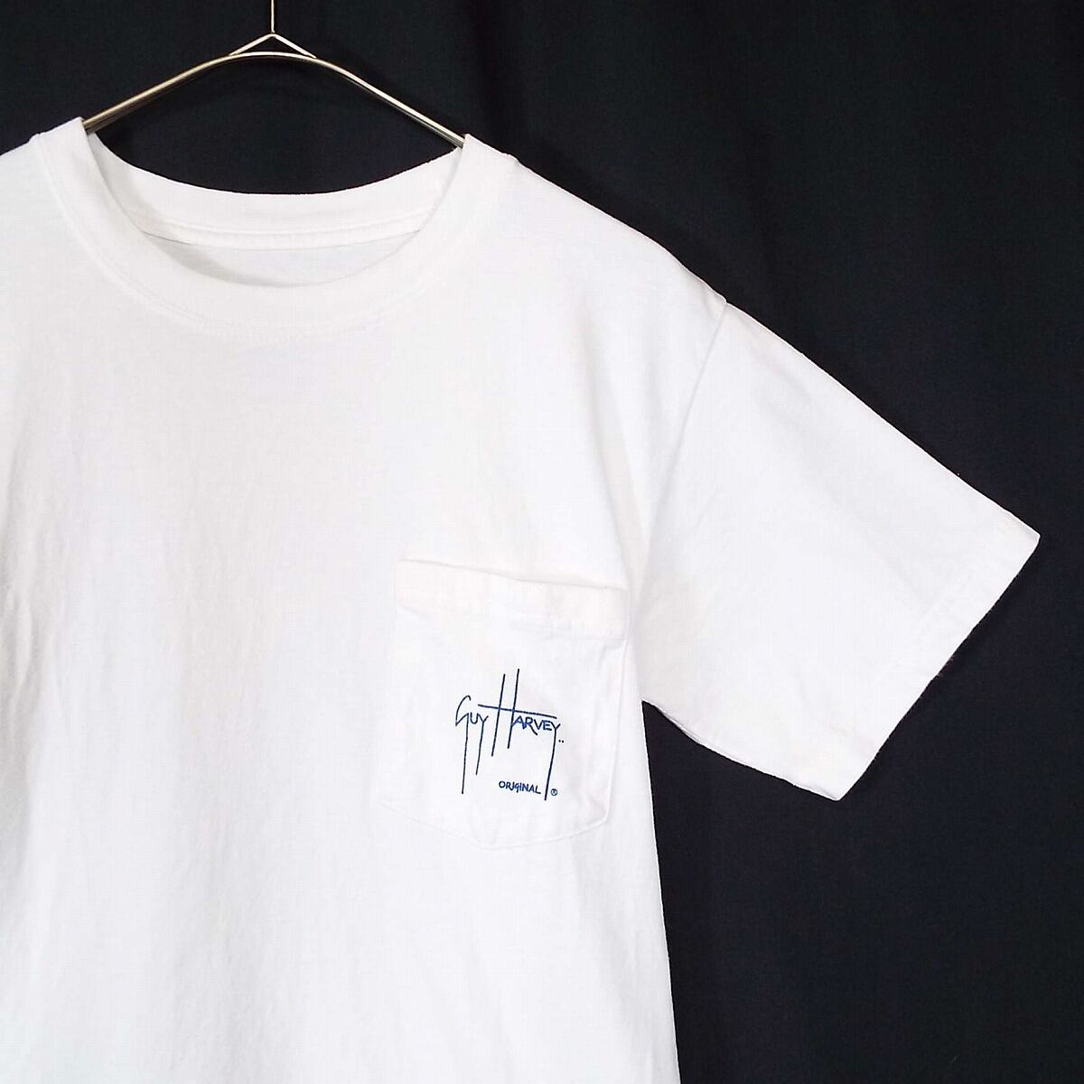 【肩幅41cm】【海洋生物アーティスト】2000年代 GUY HARVE ガイハーベイ BLUE WARTER ポケット カジキマグロ 魚 フュッシュ 半袖Tシャツ Sサイズ ホワイト コットン100%【湘南倉庫】メンズ古着 17003193