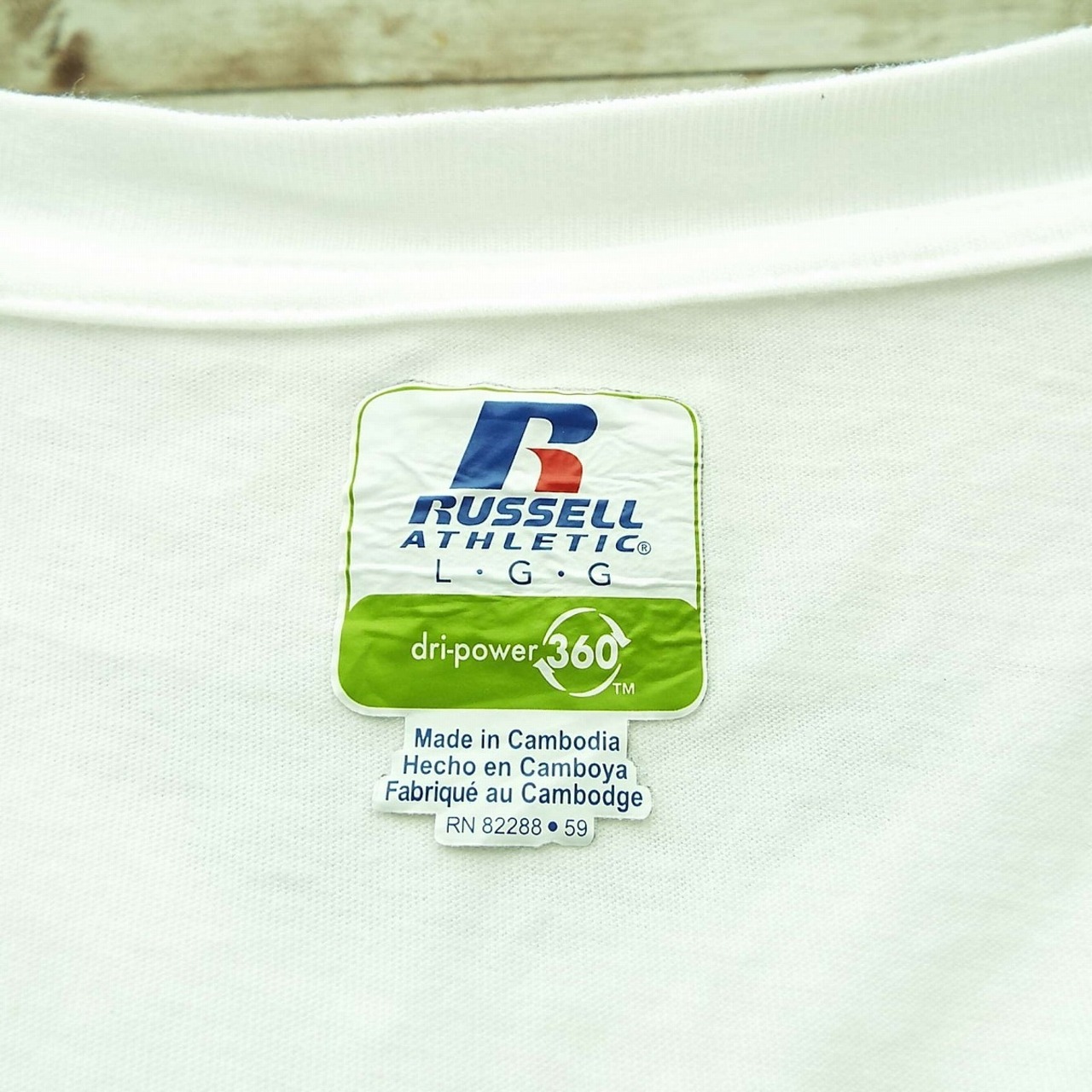 【肩幅47cm】RUSSELL ATHLETIC ラッセルアスレティック dri-power360 速乾素材 半袖Tシャツ Lサイズ ホワイト コットンナイロン混【湘南倉庫】メンズ古着 17003193