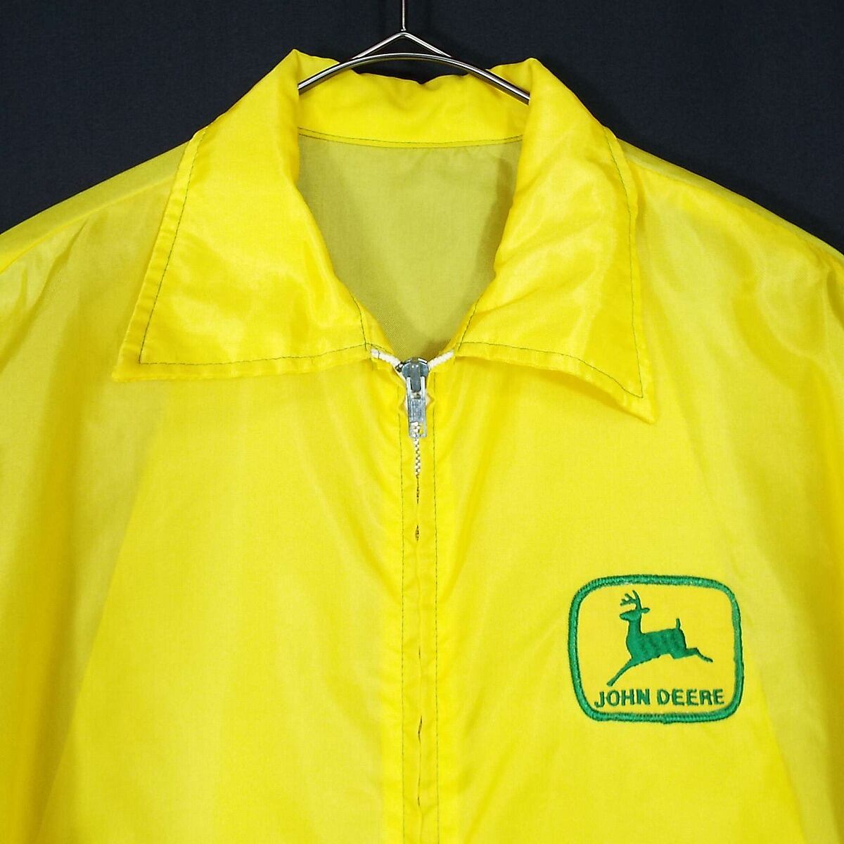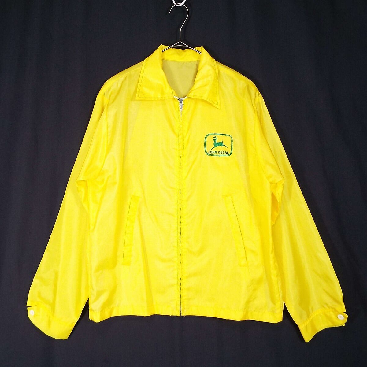 【ヴィンテージ】70's 非売品 レア JOHN DEERE ウインドブレーカー フルジップアップ 企業ロゴ 刺繍 Mサイズ イエロー【湘南倉庫】US古着 12390397