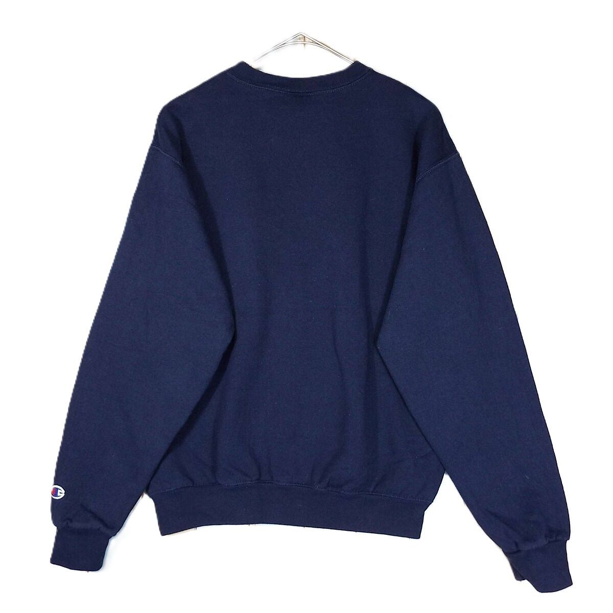 「PRICE DOWN】【肩幅50cm】【カレッジロゴ】メキシコ製 champion チャンピオン Southern Methodist Mustangs University 南メソジスト大学 SMU 袖ロゴ 長袖トレーナー Sサイズ ネイビー紺【仙台倉庫】US古着 スウェット プルオーバー ワンポイント刺繍