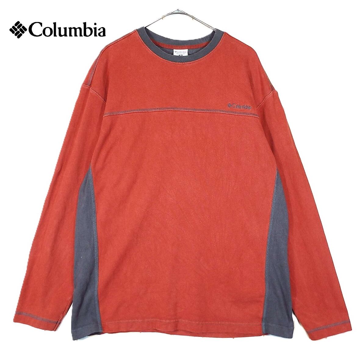 【Columbia】コロンビア ステッチワーク バイカラー ワンポイント刺繍 長袖シャツ Mサイズ(肩幅:54cm)オレンジブラウン【湘南倉庫】メンズ古着 アウトドア キャンプ ロンT 防寒 17003278