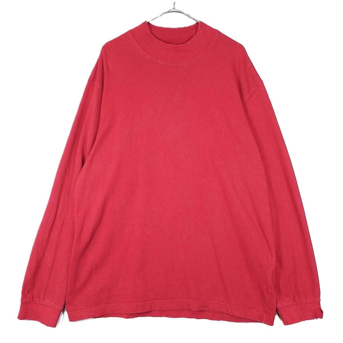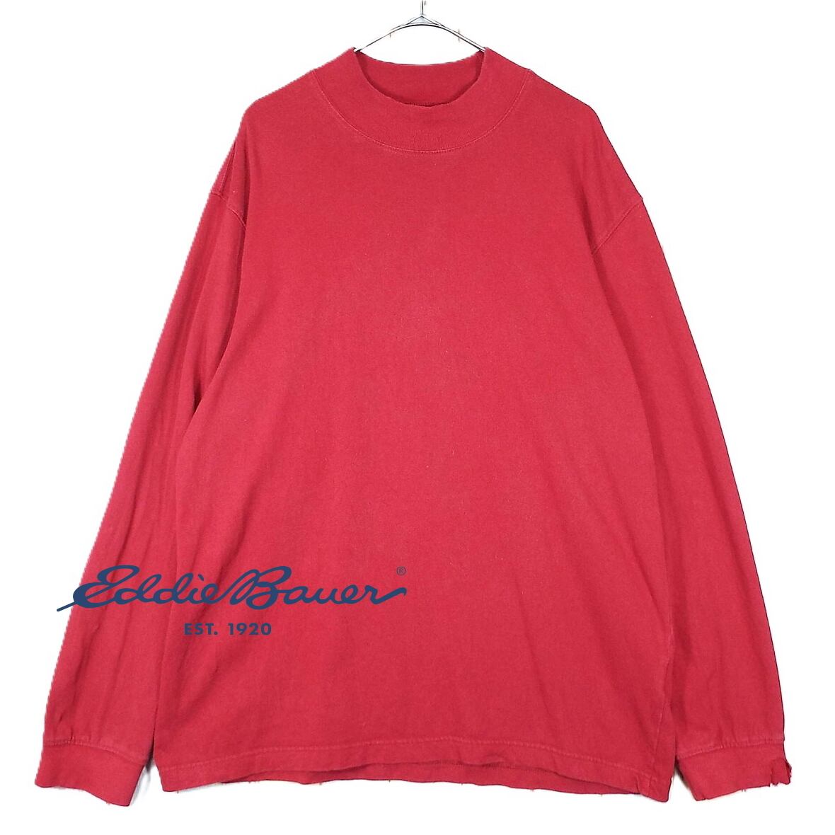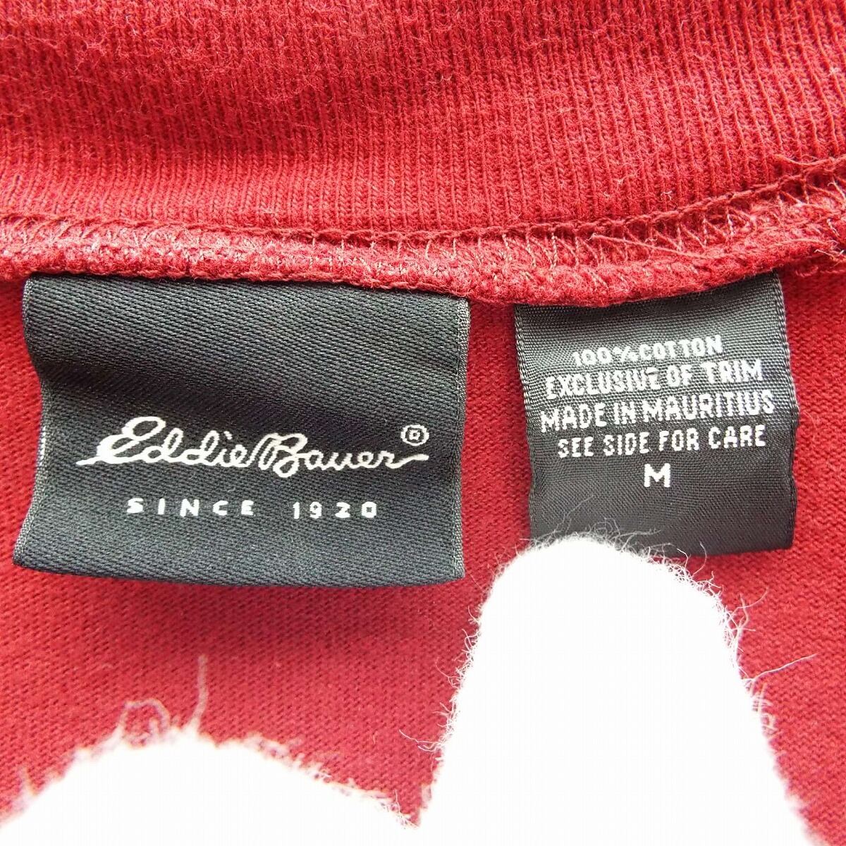 【Eddie Bauer】エディー・バウアー ミドルネック 無地 長袖Tシャツ Mサイズ(肩幅:51cm)ワインレッド コットン100%【湘南倉庫】メンズ古着 ロンT 防寒 アウトドアブランド 12351992 ノームコア