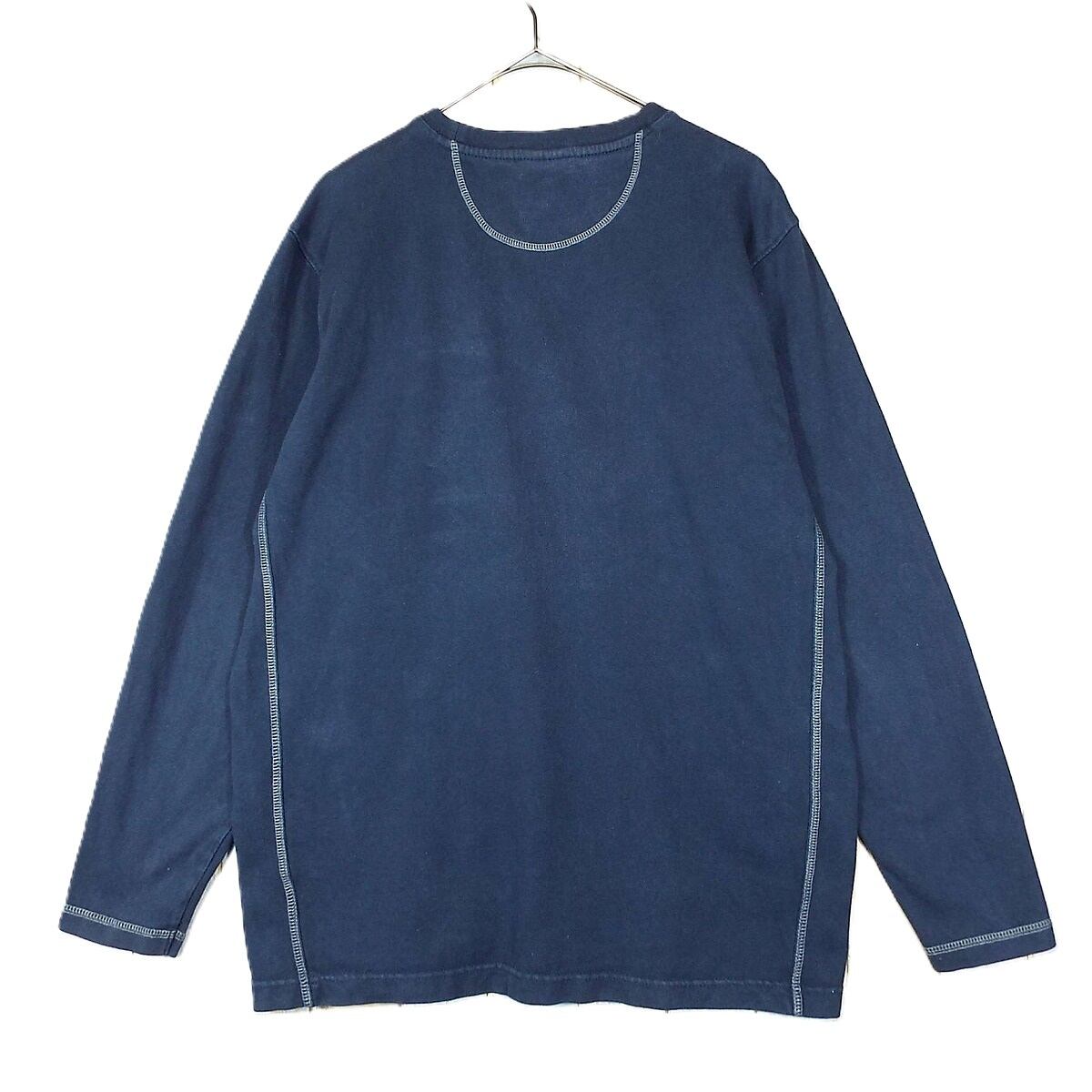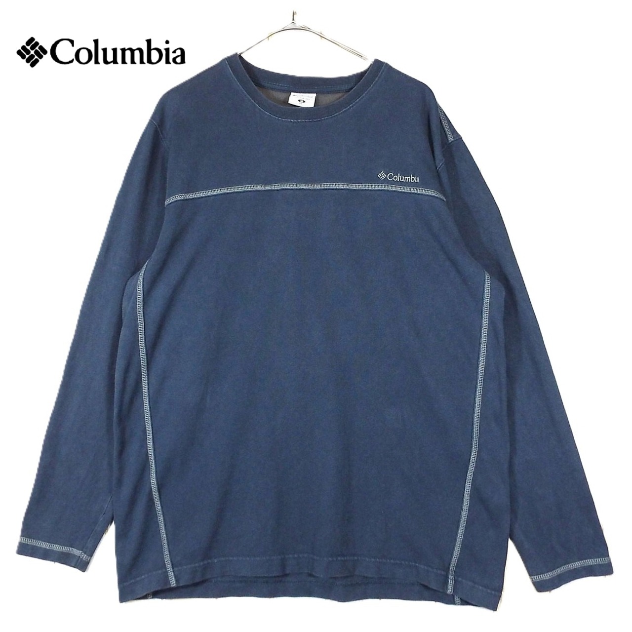 【Columbia】コロンビア ステッチワーク 無地 ワンポイント刺繍 長袖シャツ Mサイズ(肩幅:47cm)ネイビーブルー コットン100%【湘南倉庫】メンズ古着 アウトドア キャンプ ロンT 防寒 16000339 ノームコア