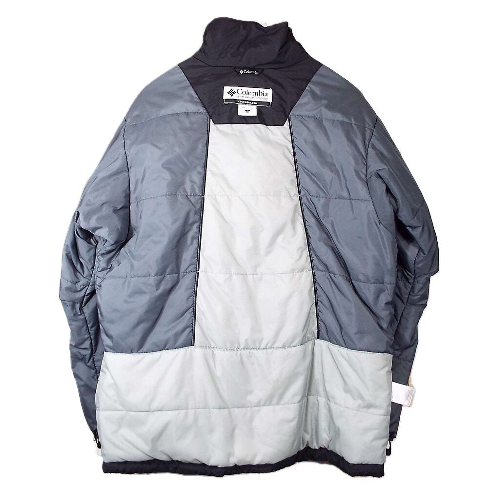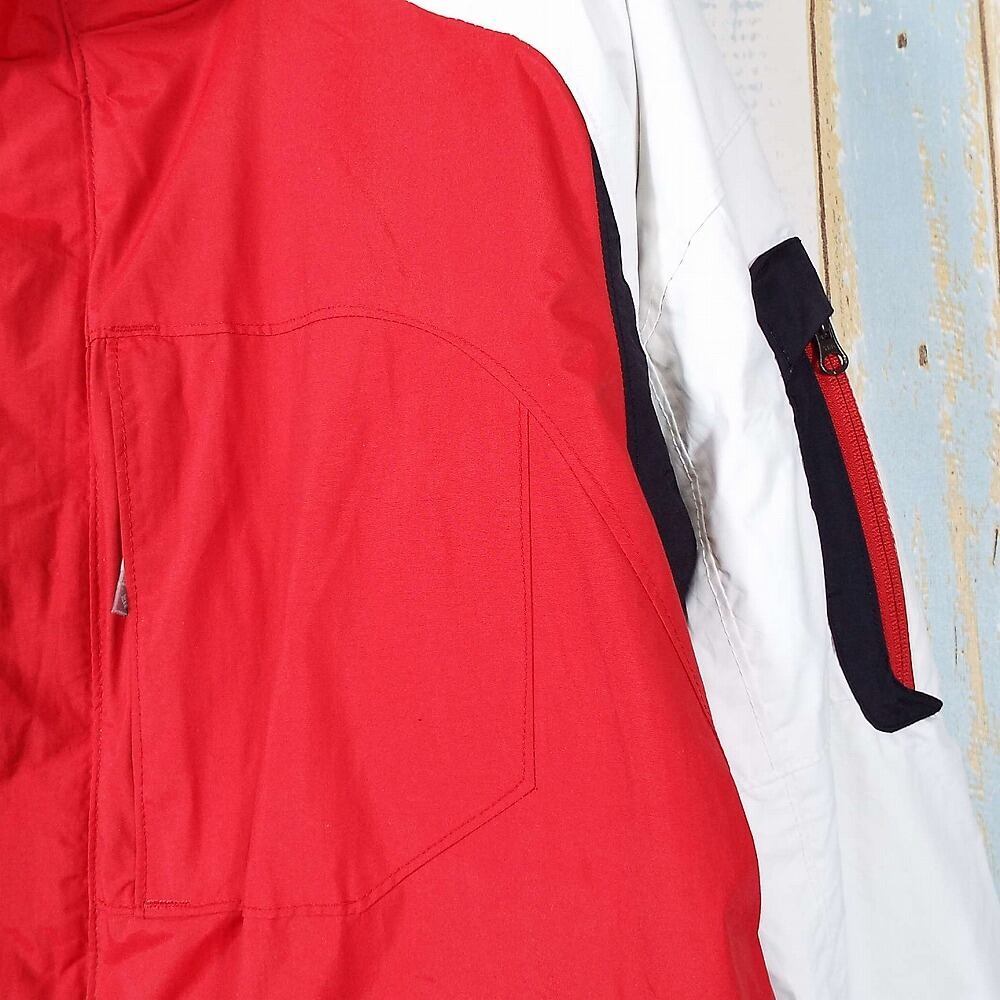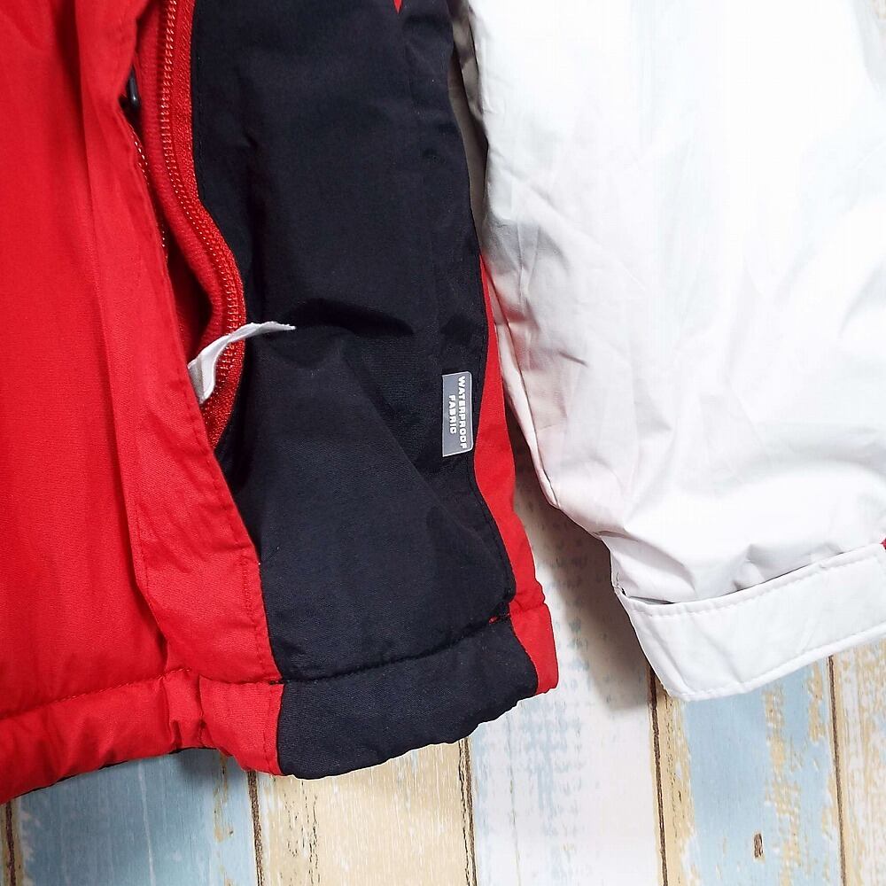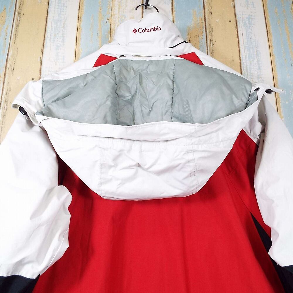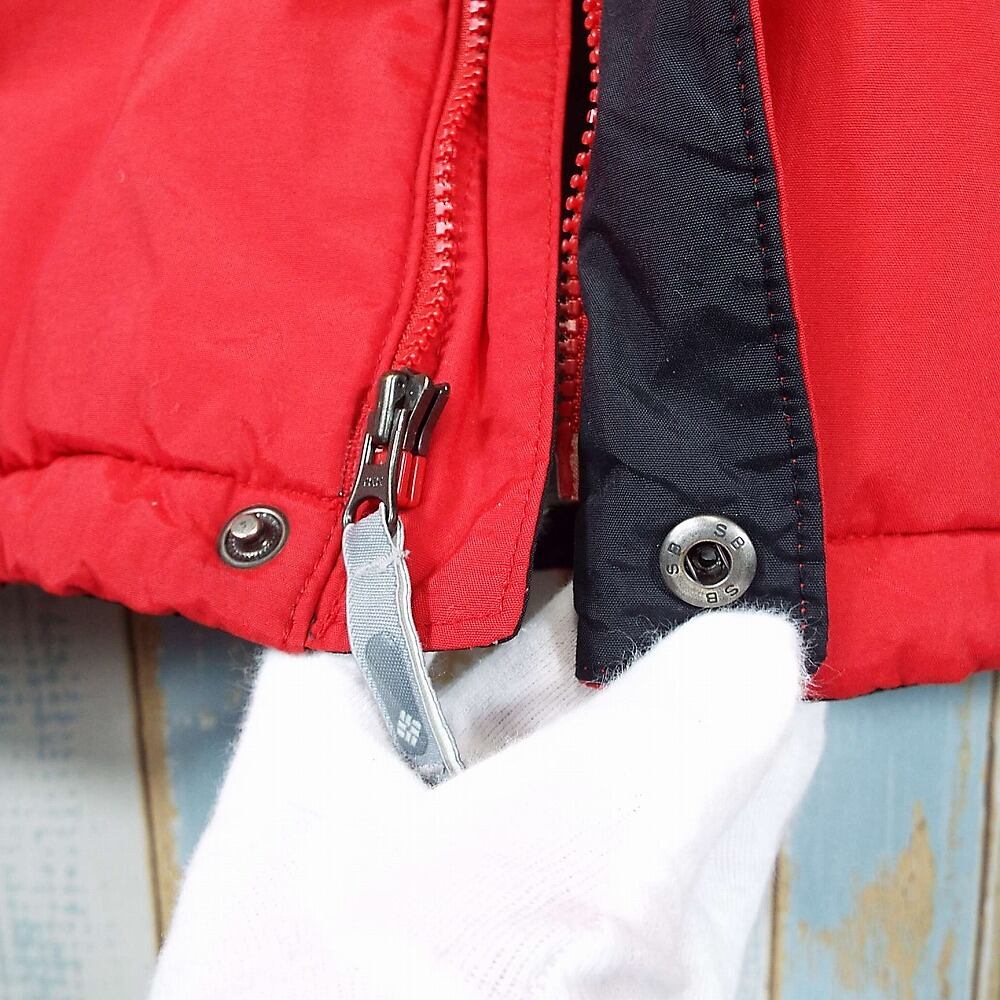 【防寒ジャケット】Columbia コロンビア 企業ロゴ 着脱フード 中綿入り 防寒 マウンテンジャケット Lサイズ(裄丈:95cm)レッド・ホワイト(湘南倉庫)US古着 アウトドア キャンプ 登山 バイカラー