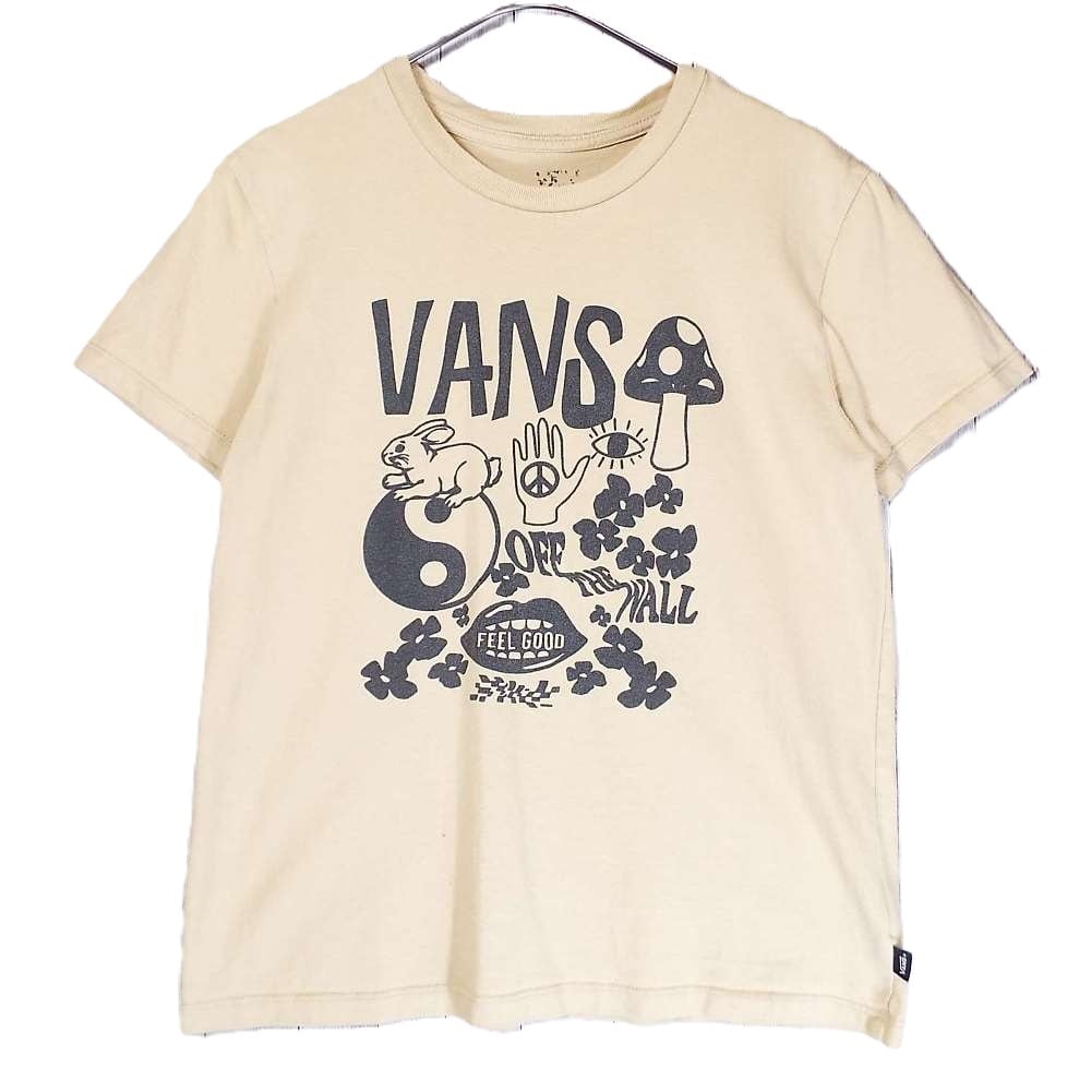 【肩幅41cm】【森羅万象プリント】VANS バンズ イルミナティ 陰陽 ピース キノコ 半袖Tシャツ Sサイズ ブラウンベージュ【湘南倉庫】USメンズ古着 17002554 T82