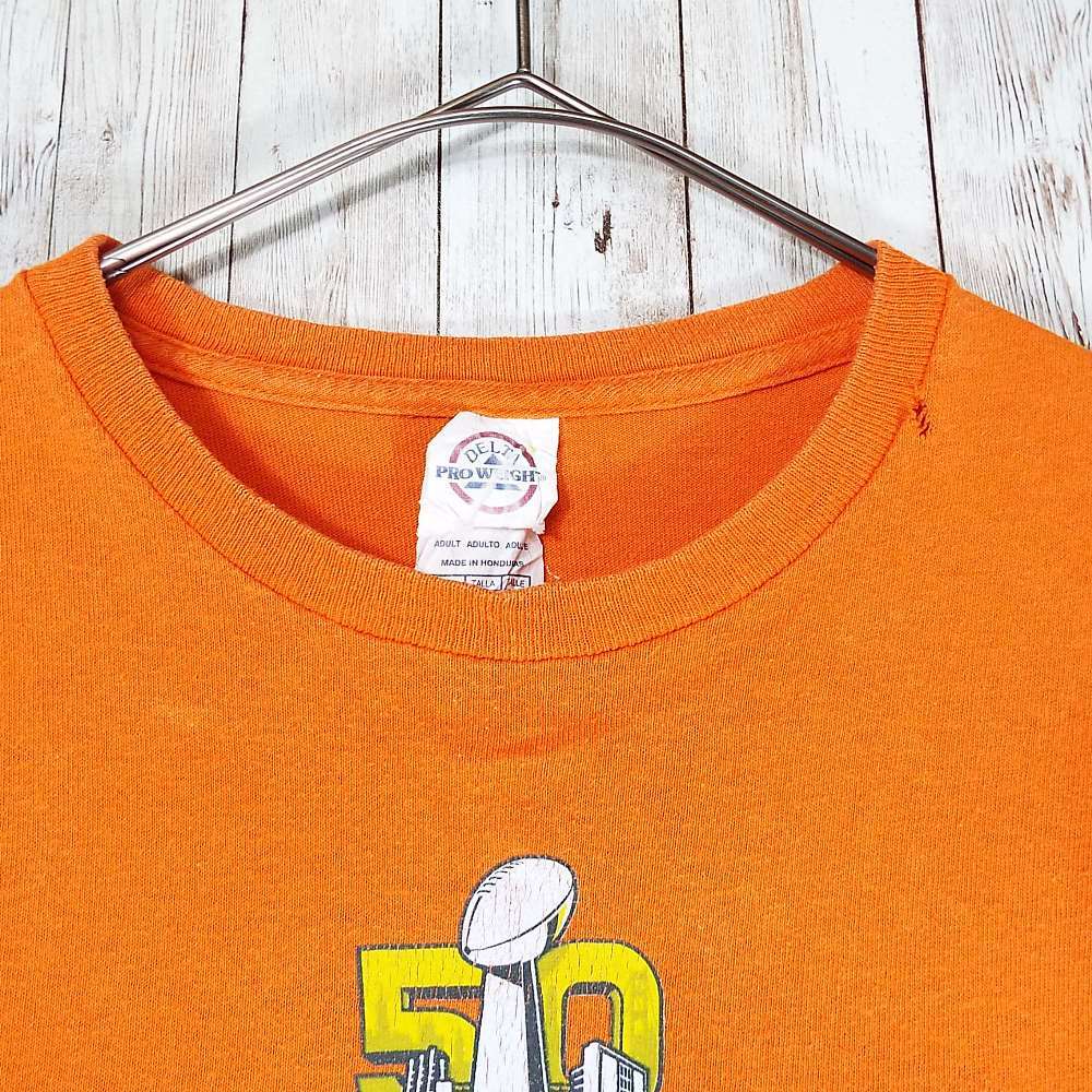 【スーパーボール50回記念】10s DELTA PRO WEIGHT NFL SUPER BOWL 50(2016年)DENVER BRONCOS フットボール サイズS(肩幅 41cm)オレンジ【湘南倉庫】2010年代 USメンズ古着 ダメージ 17002554