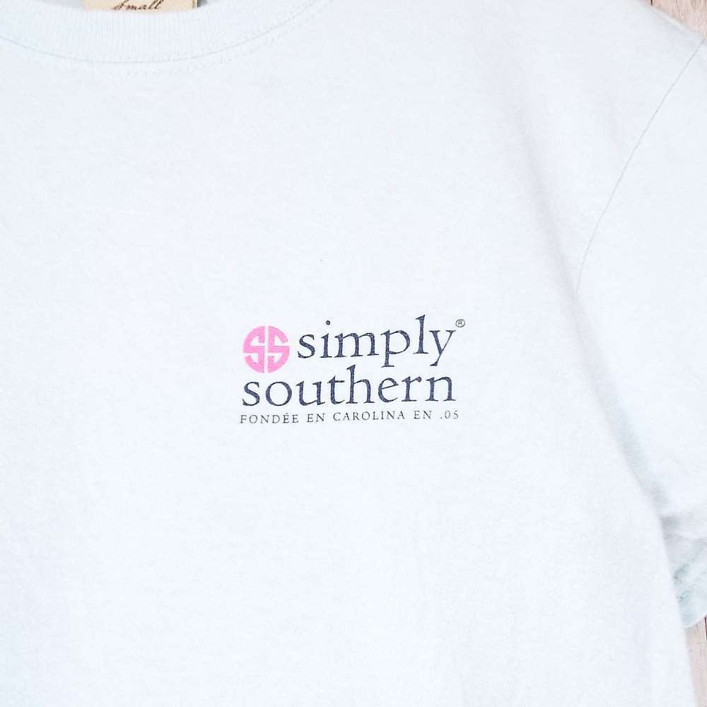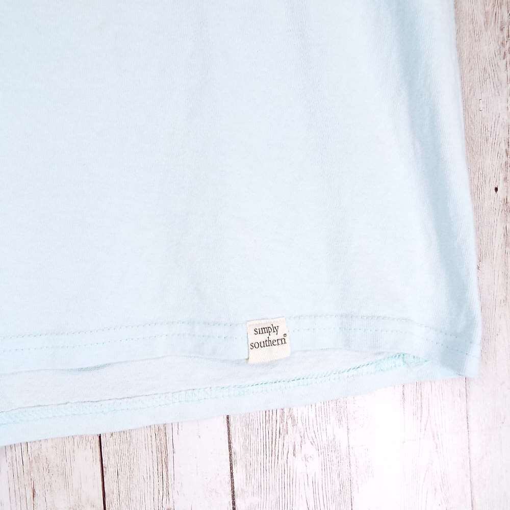 【肩幅43cm】【キャラクター】メキシコ製 simply southern シンプリーサウザン 大判プリント ビッグロゴ 半袖Tシャツ スカイブルー【湘南倉庫】USメンズ古着 17002554