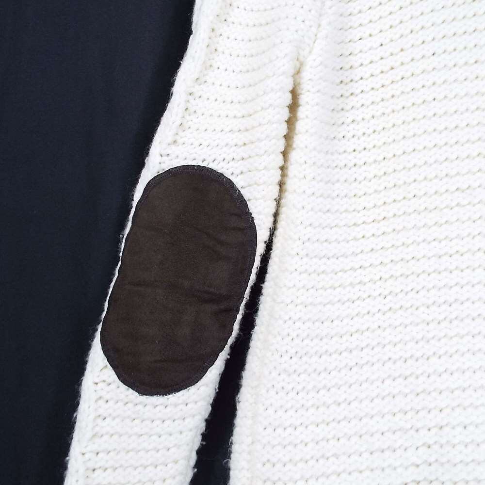 ・肘パットがついた素敵なケーブル編みニットカーディガンです。