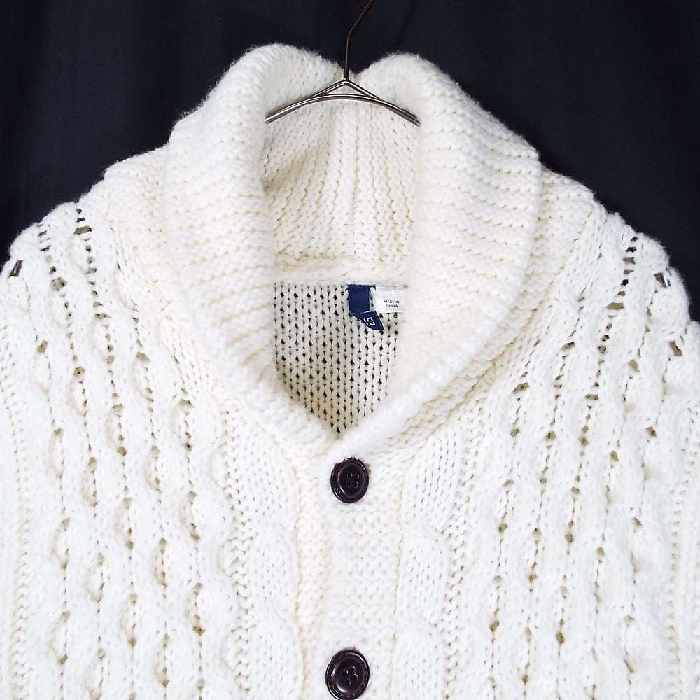 【肩幅46cm】DIVIDED by H&M エイリアンドエム ケーブル編み 長袖ニットカーディガン Sサイズ オフホワイト(クリーム)【湘南倉庫】USメンズ古着