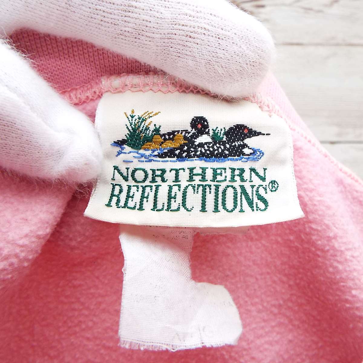 【90年代ビンテージ】90s NORTHERN REFLECTIONS(ノーザンリフクレクションズ)アニマル 鳥 すすめ 大判プリント クルーネック 長袖トレーナー XLサイズ(肩幅 63cm)ライトピンク【湘南倉庫】USメンズ古着 スウェット 4912345017420