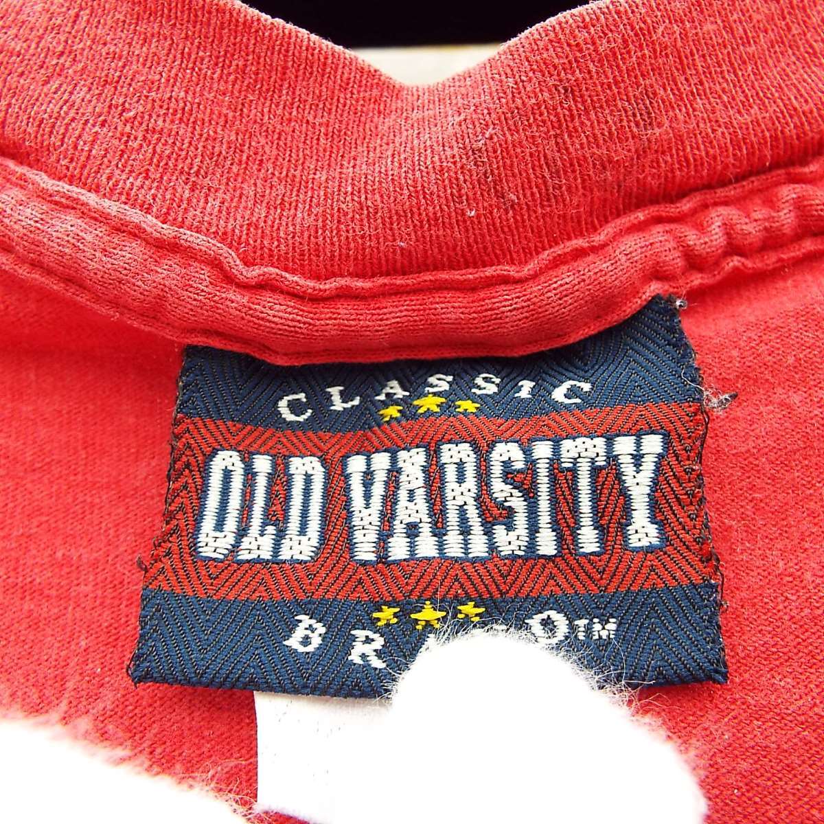 【肩幅55cm】【メキシコ製】OLD VARSITY CLASSIC(オールドバーシティクラッシック)星条旗 刺繍ロゴ 半袖Tシャツ XLサイズ レッド コットン100%【湘南倉庫】USアメリカ古着 17002431 T89