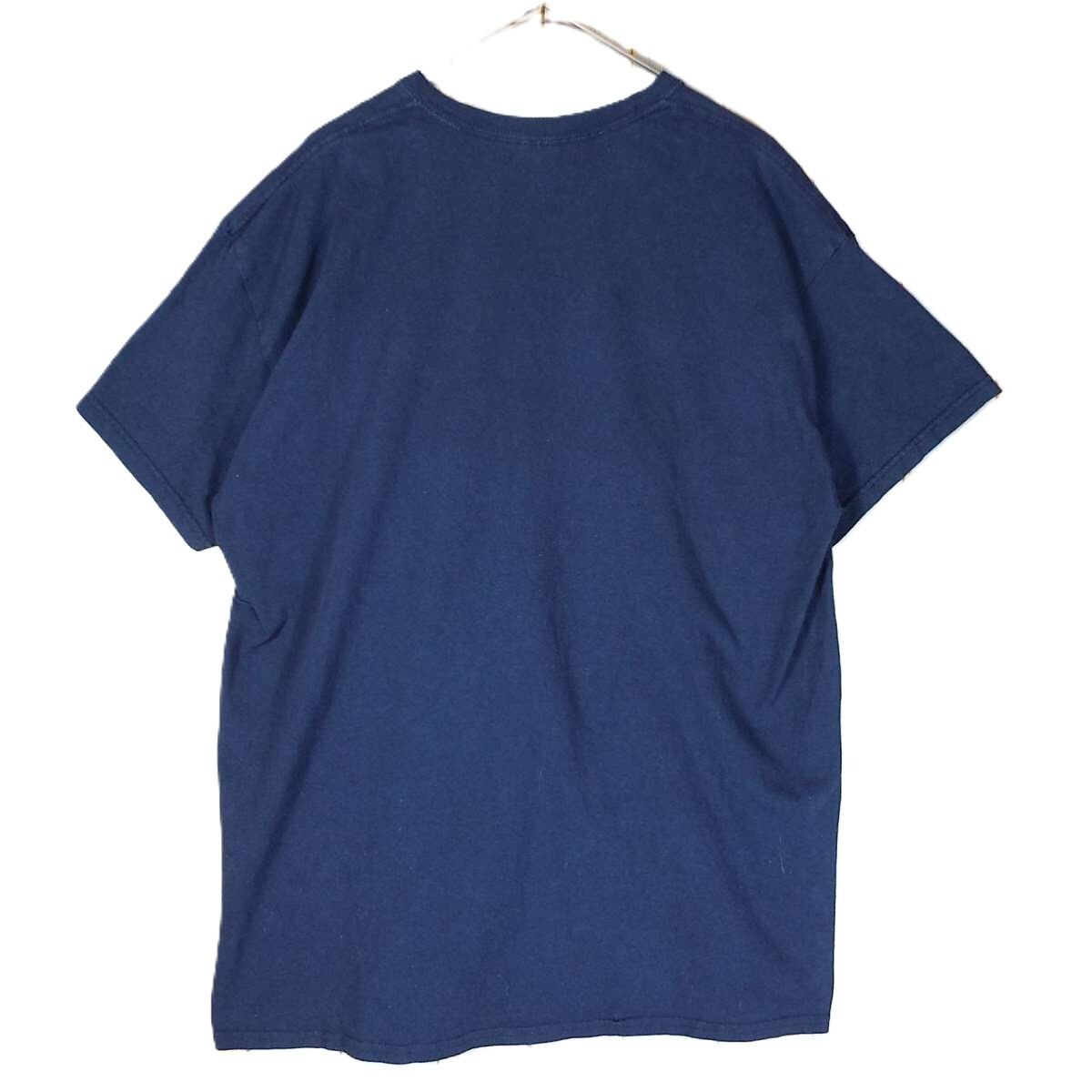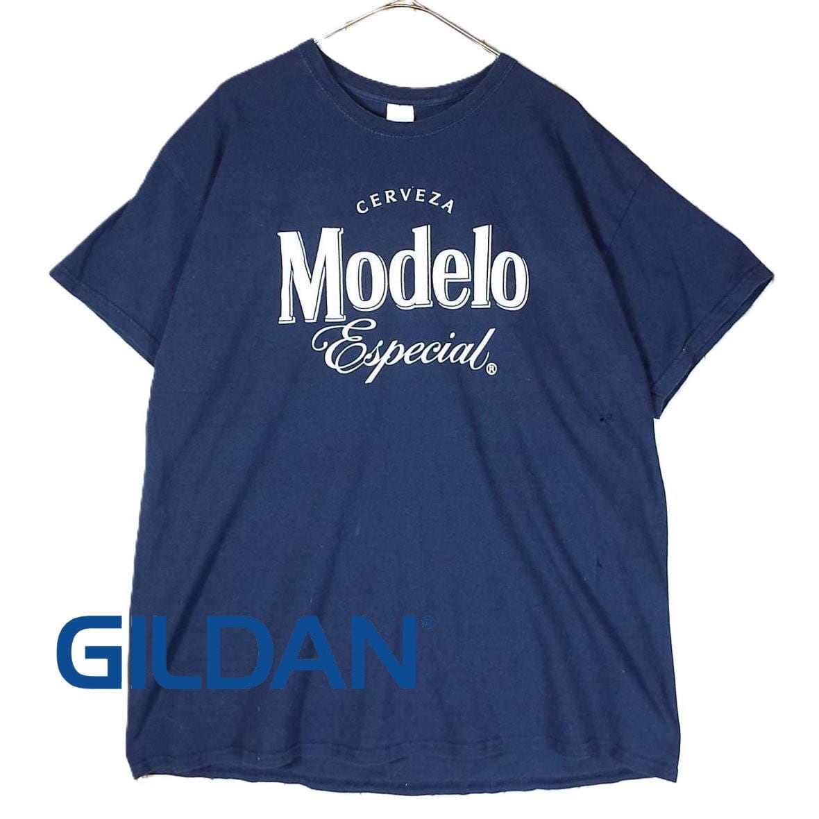 【肩幅53cm】【ダメージ】GILDAN(ギルダン)CERVEZA MODELO SPECIAL ビールブランドロゴ プリント 半袖Tシャツ XLサイズ ネイビー コットン100% 【湘南倉庫】USメンズ古着 17002431 HEAVY COTTON T89