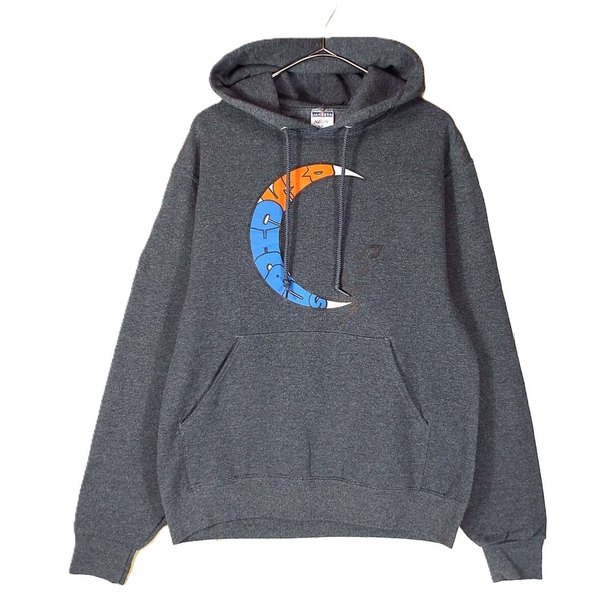 【肩幅50cm】【三日月&音符】JERZEES(ジャージーズ)DMS CHORUS BACHMANN カラープリント 長袖パーカー Sサイズ グレー コットンポリ混紡【湘南倉庫】USアメリカメンズ古着 16001282